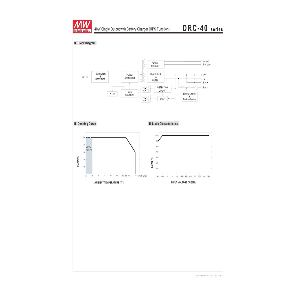 MEAN WELL DRC-40B Switching Power Supply 40W 24~30V 110V220V AC To 27.6V DC 0.95A DIN Rail Battery Charger With UPS Function