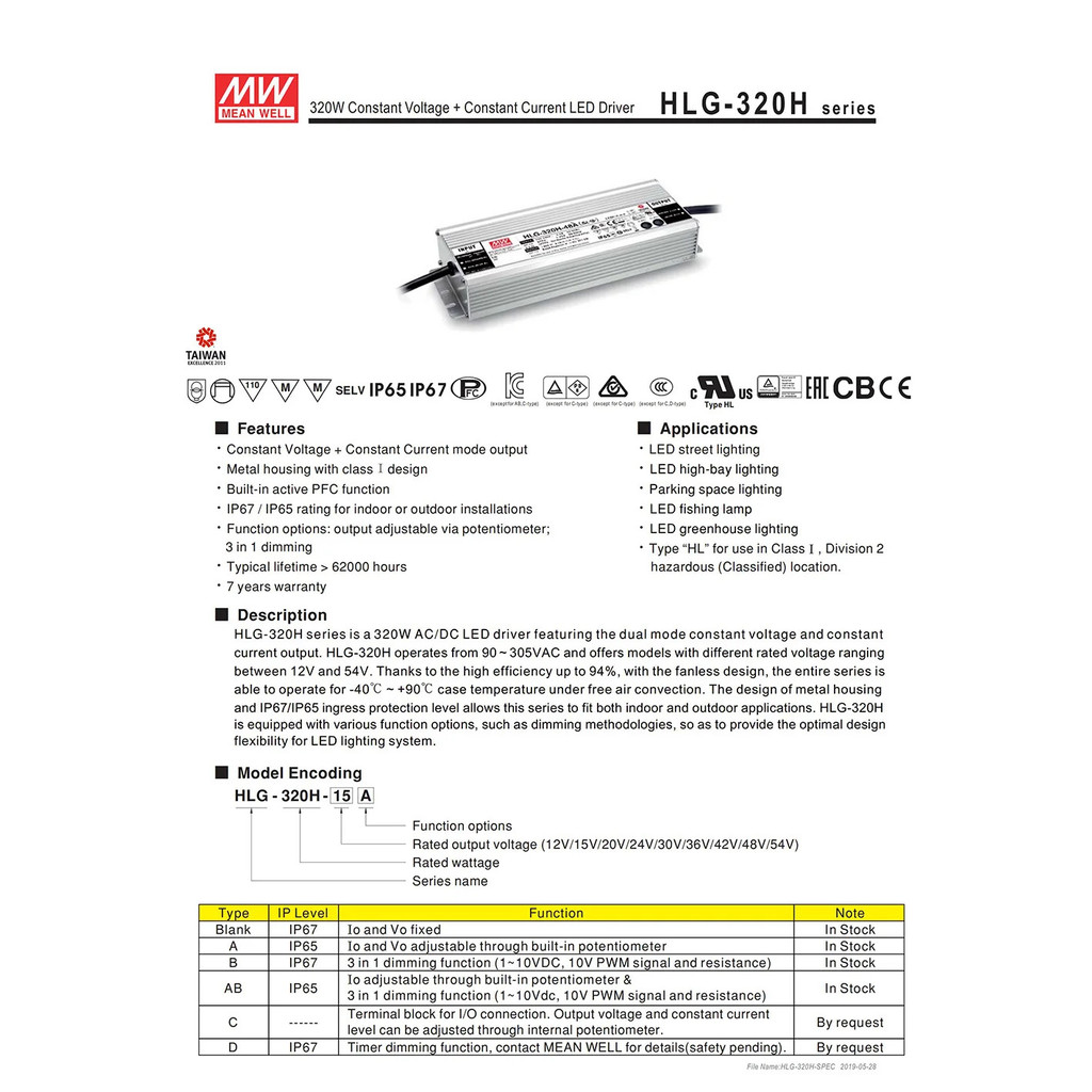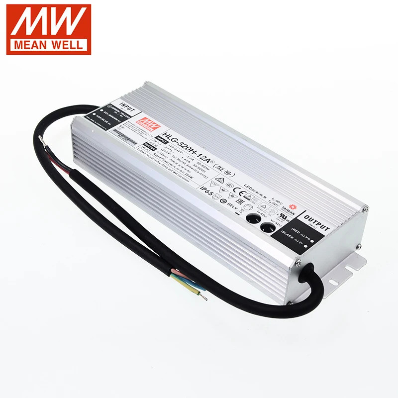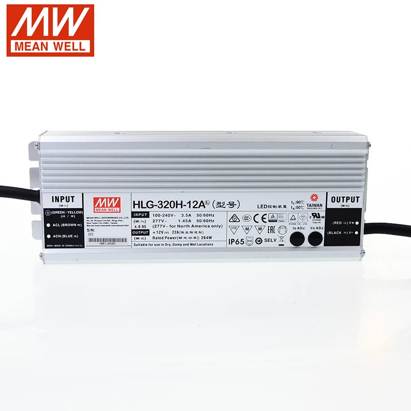 MEAN WELL LED Power Supply HLG-320H-12A 12V Adjustable LED driver 110V/220V AC to 12V DC 22A 264W waterproof IP65 Transformer
