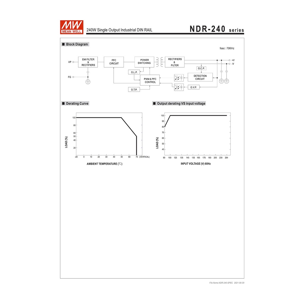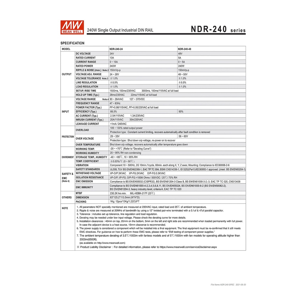Original MEAN WELL NDR-240-48 240W 48V Industrial DIN Rail Switching Power Supply 110V/220V AC to 48V DC 5A Transformer with PFC