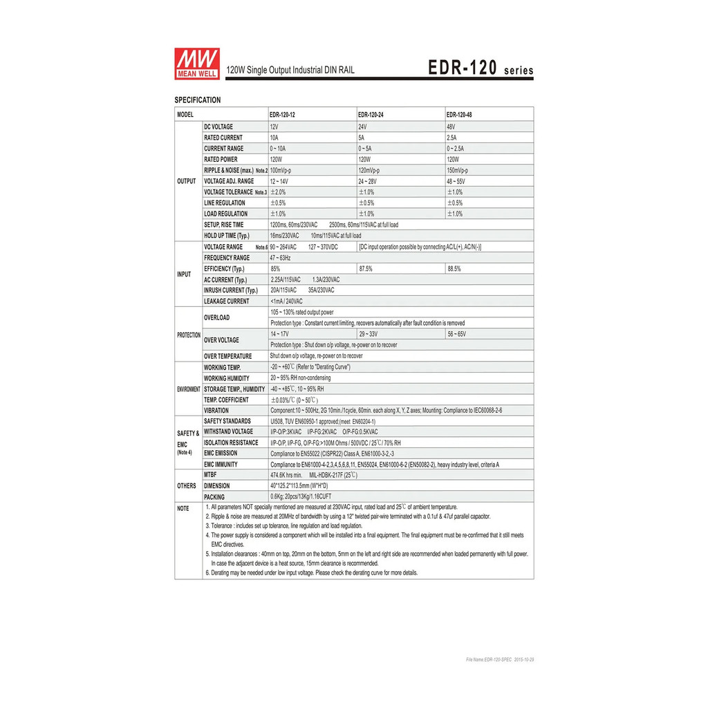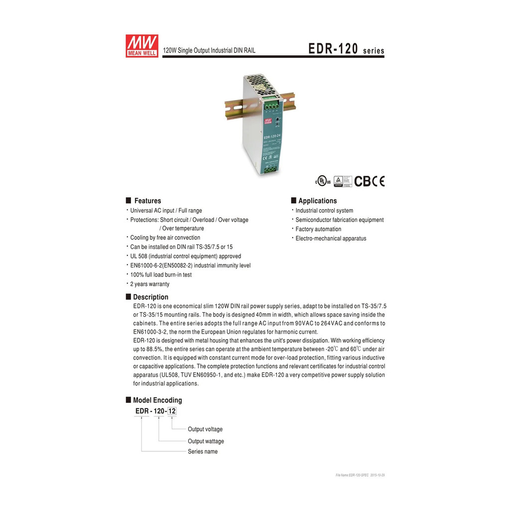 MEAN WELL EDR-120-48 120W 48V DIN Rail Switching Power Supply 110V/220V AC to 48V DC 2.5A Industrial Power Unit