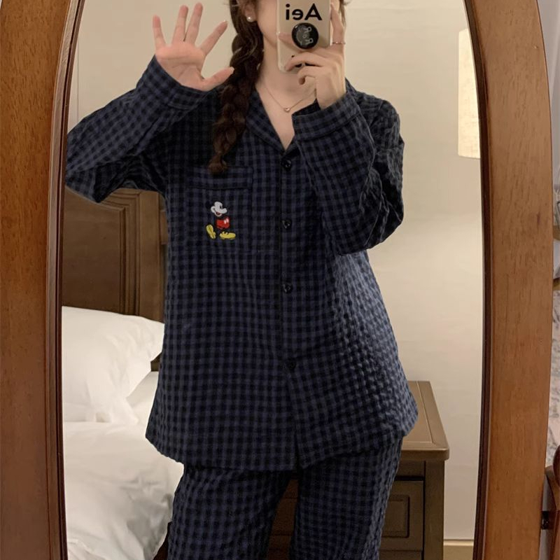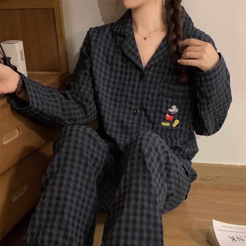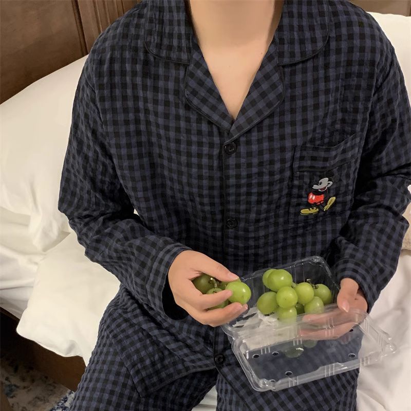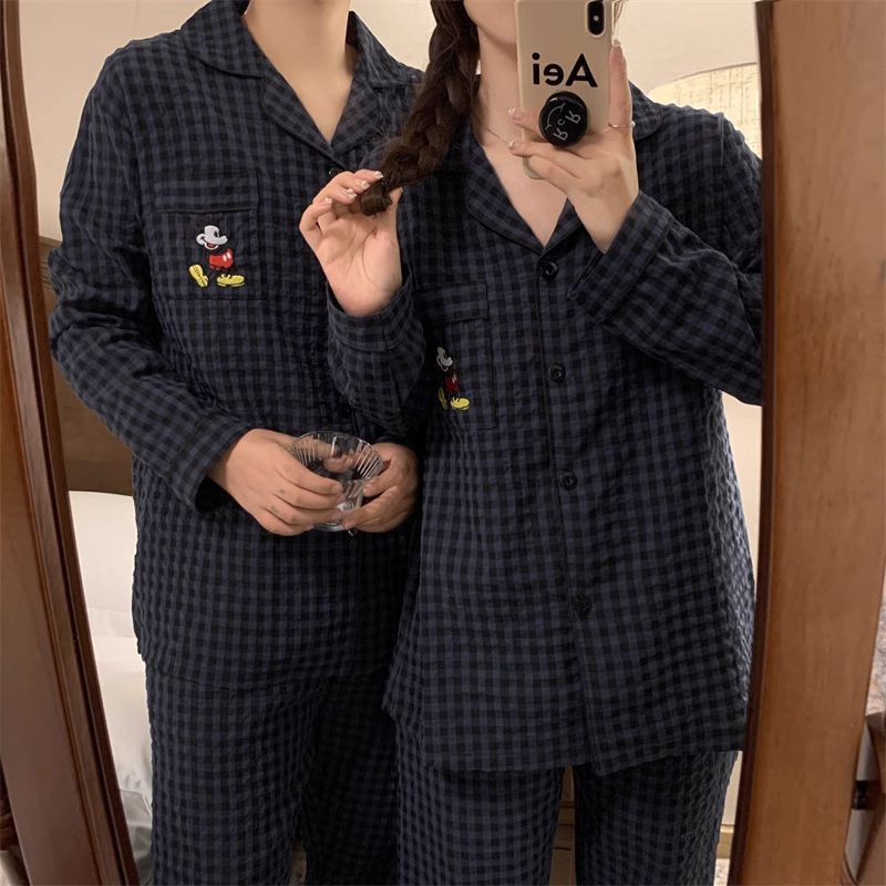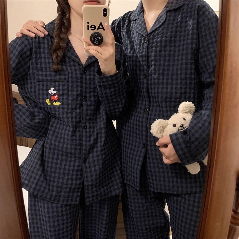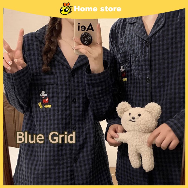 【Ready Stock】Classic blue plaid comfortable long sleeve men's and women's baju tidur wanita couples pant suit sleepwear women nightwear 蓝色 格子 男款 女款 情侣 长袖睡衣套装