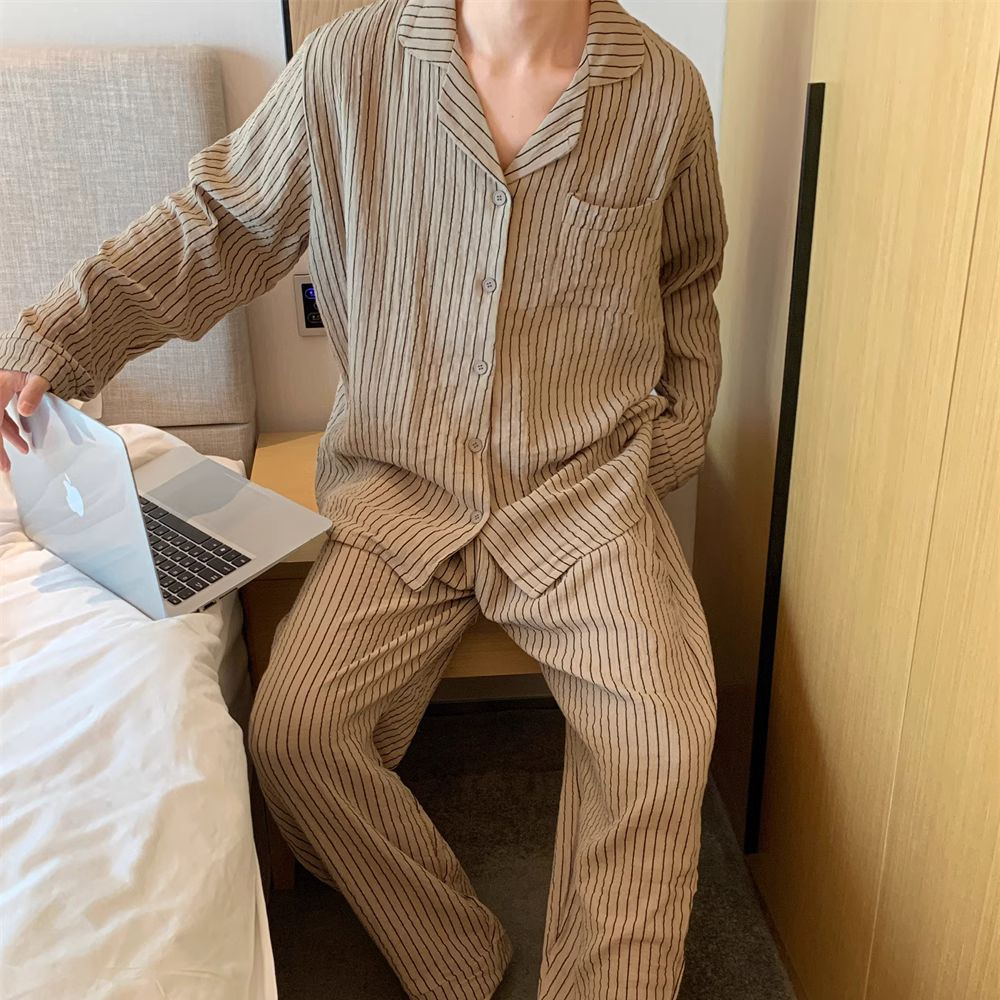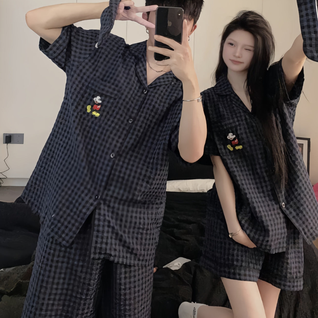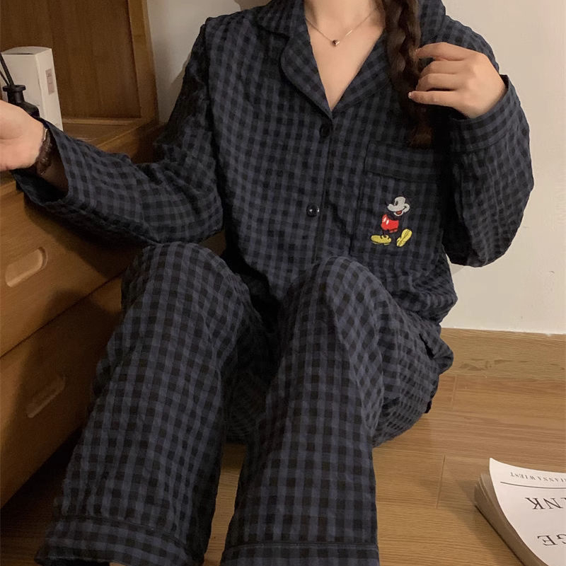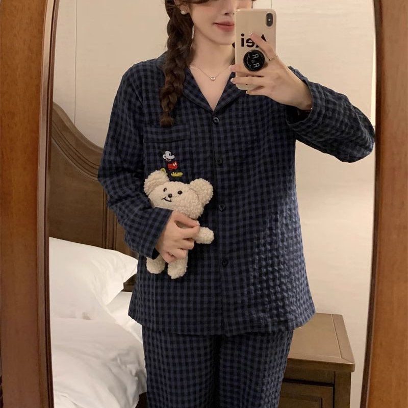 【Ready Stock】Classic blue plaid comfortable long sleeve men's and women's baju tidur wanita couples pant suit sleepwear women nightwear 蓝色 格子 男款 女款 情侣 长袖睡衣套装