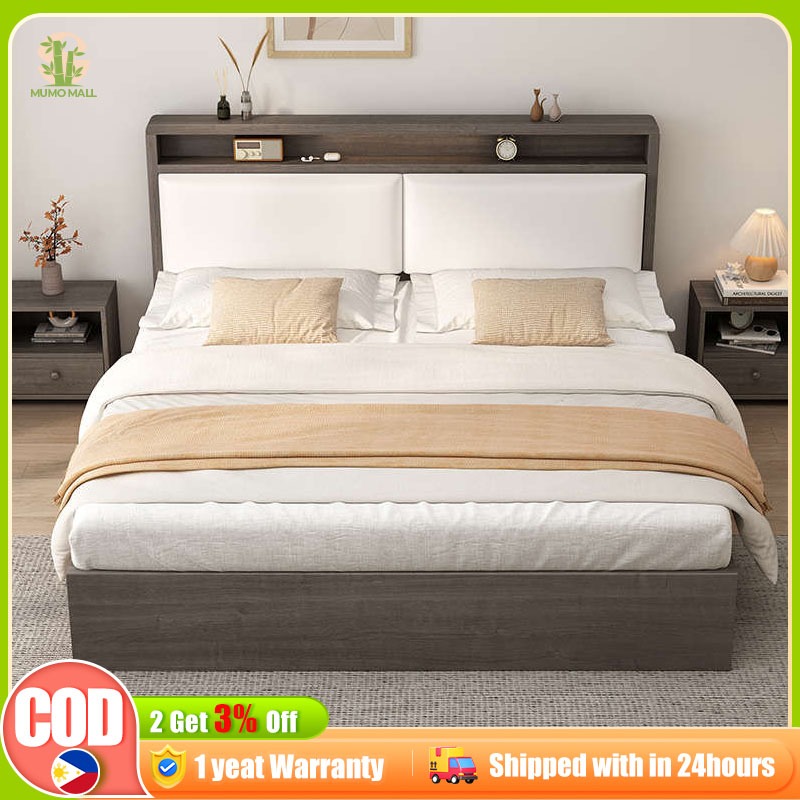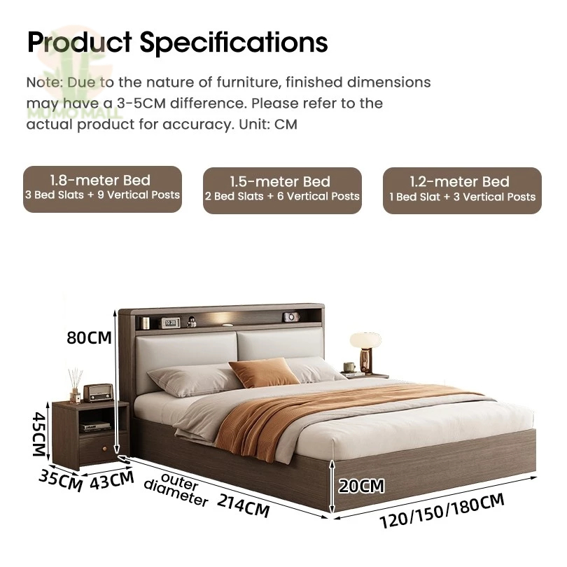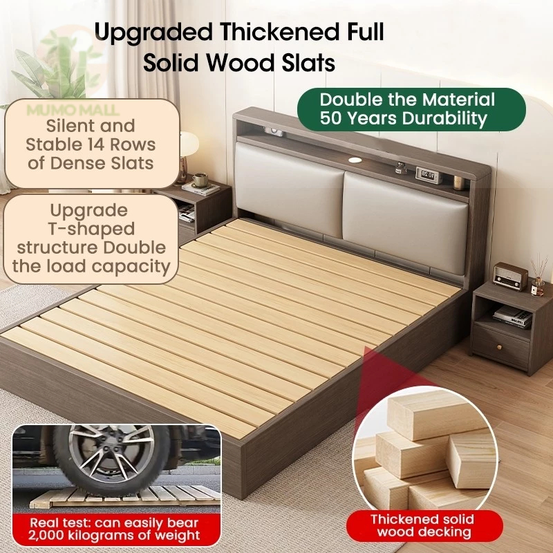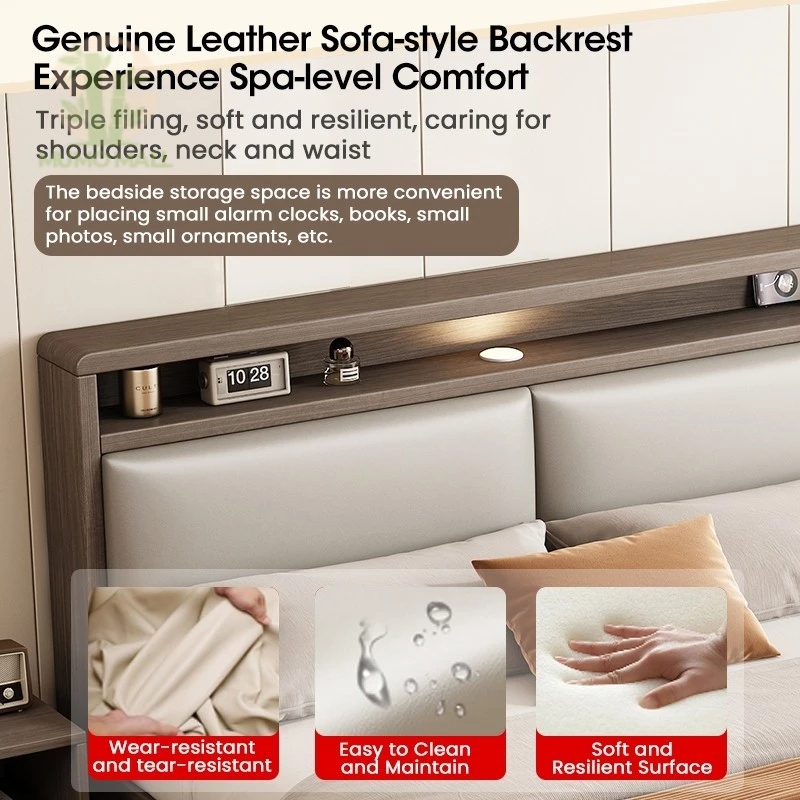 Solid Wood Bed Double Bed High End Simple Soft Leather Bed French Wooden Frame Bed