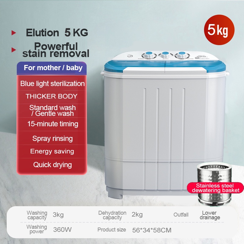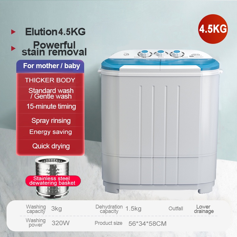 LENODI Washing machine with dryer 4-5KG Semi-Automatic Double tub Portable mini washing machine
