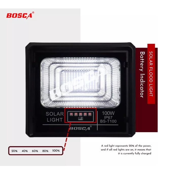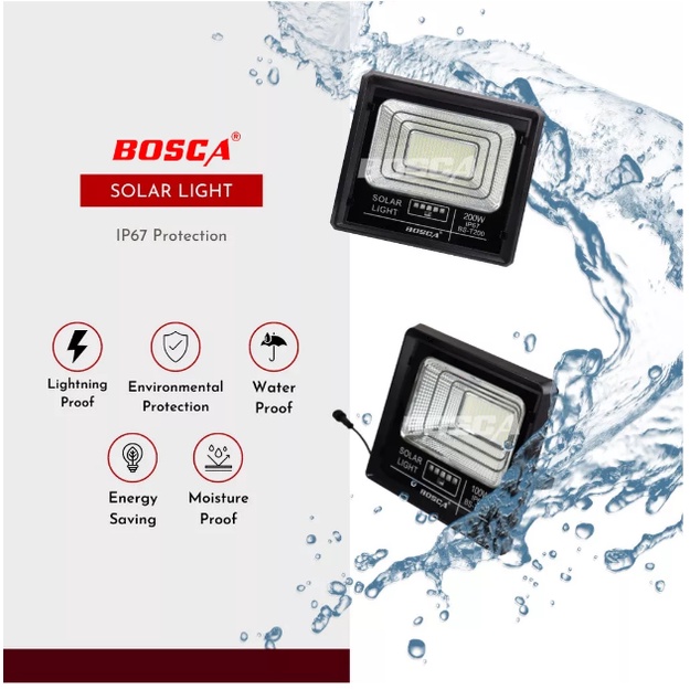 BOSCA 30W/50w/100w/200w Solar Led Outdoor Flood Light IP67 Waterproof With Remote