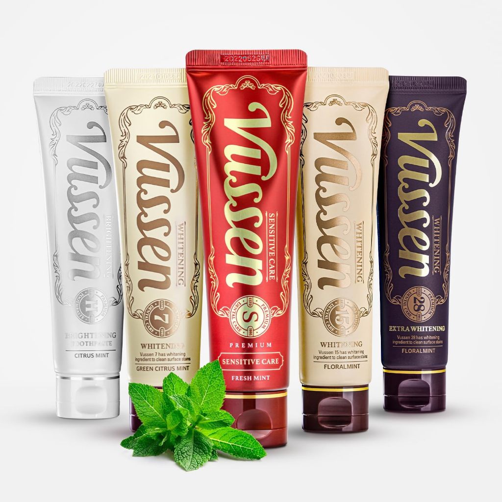 VUSSEN 7 Whitening Toothpaste 100g/pack Green Citrus Mint for Yellow Teeth Coffee Lover Smoker