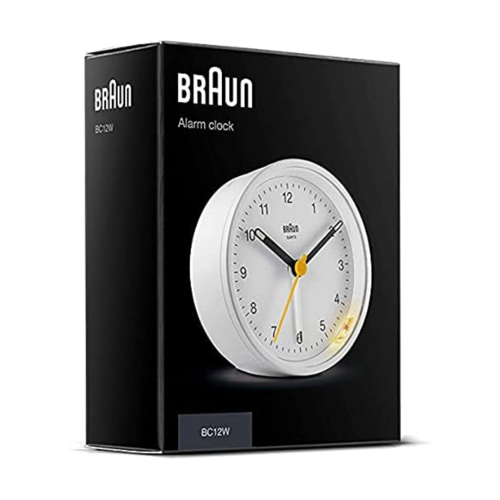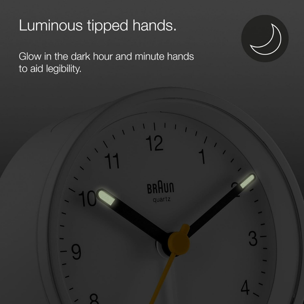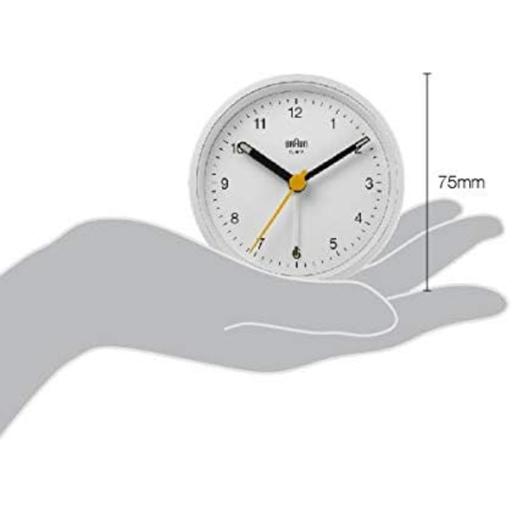 BRAUN Classic Analogue Alarm Clock Snooze Light Quiet Movement Crescendo Beep Alarm BC12W, Korea