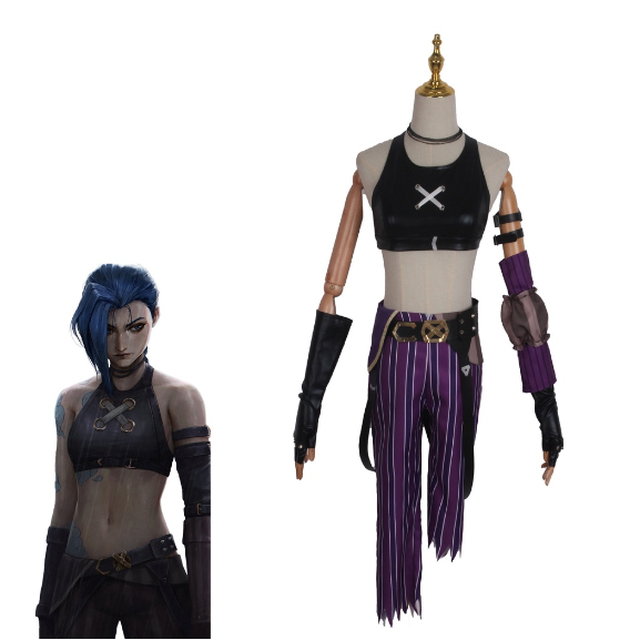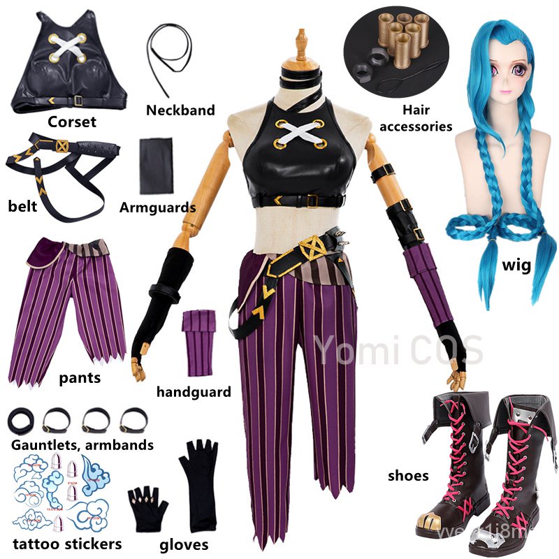 Jinx League of Legends Cosplay Costume Arcane Game Anime Blue Braid Long Wig Tattoo Sticker Cos Shoe