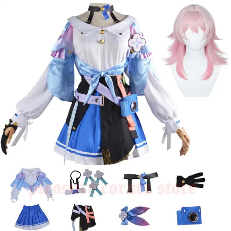 Game Honkai: Star Rail 7th March Cosplay Costumes Uniform Outfit Halloween Party Women Pink Wig