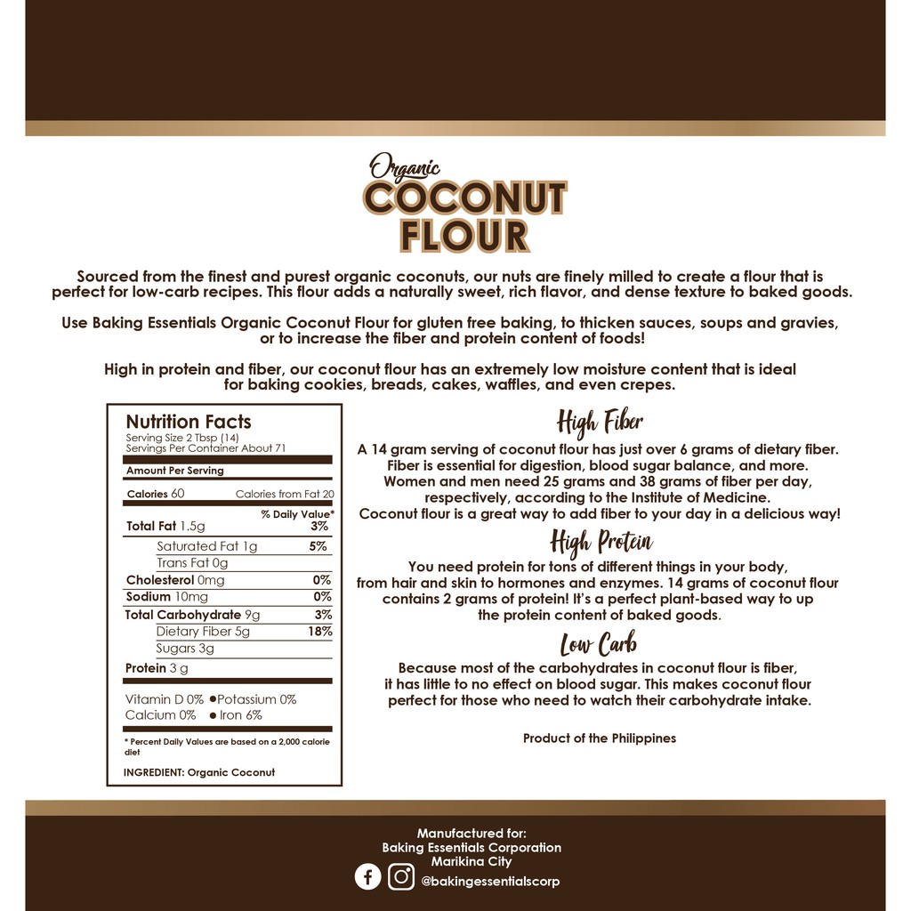 1KG Coconut Flour 100% Organic, Keto Friendly, Low Carb, High Fiber