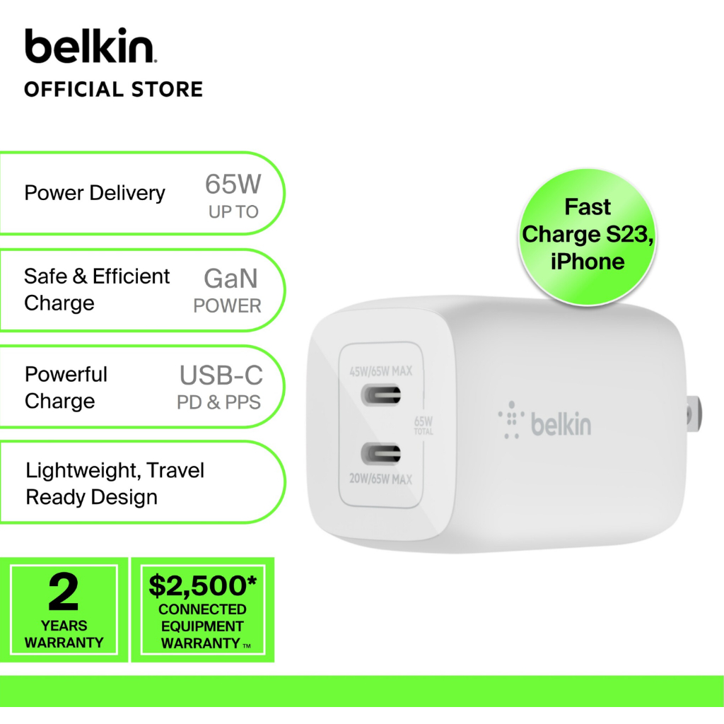 Belkin Dual USB-C® GaN Wall Charger with PPS 65W