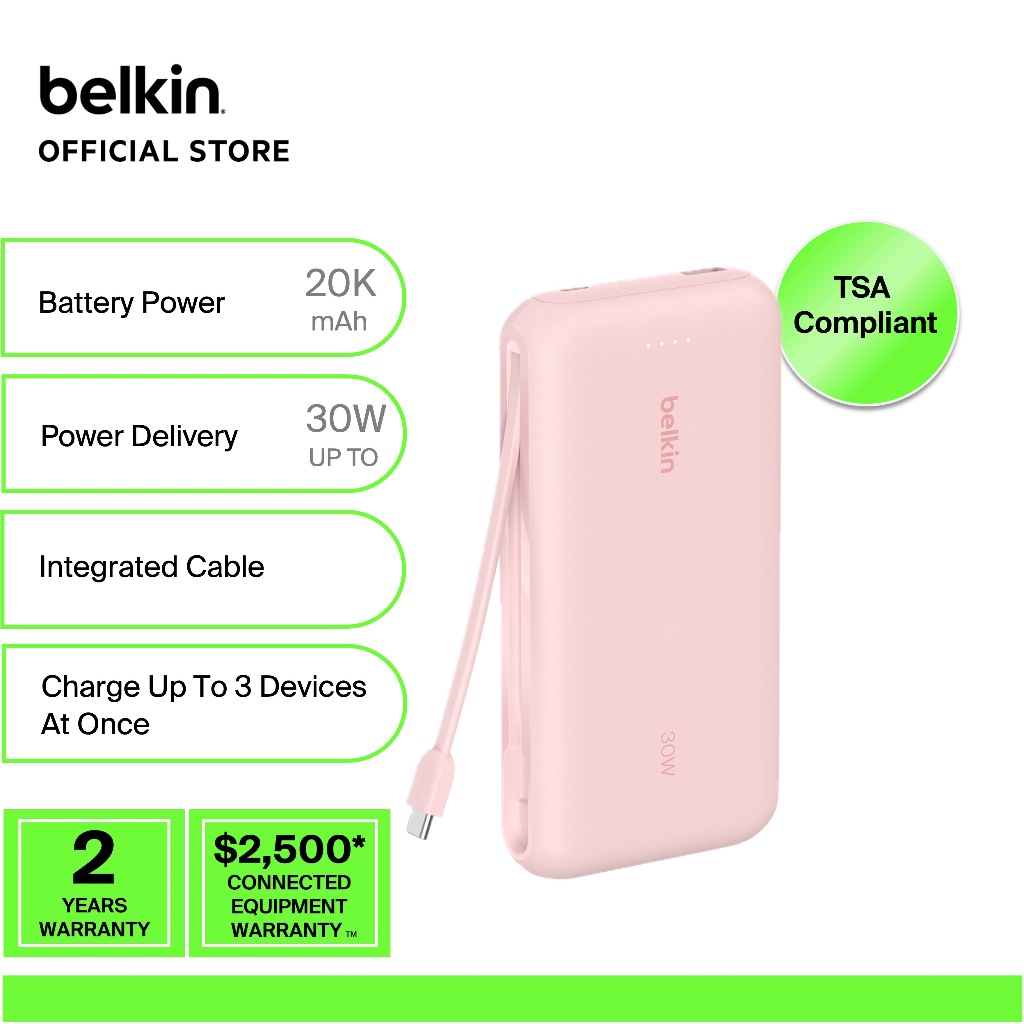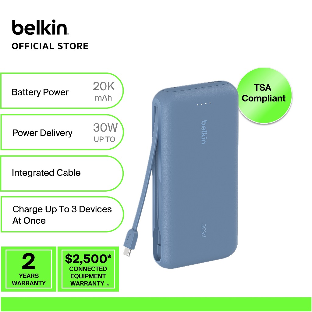 Belkin BoostCharge Power Bank 20K with Integrated Cable
