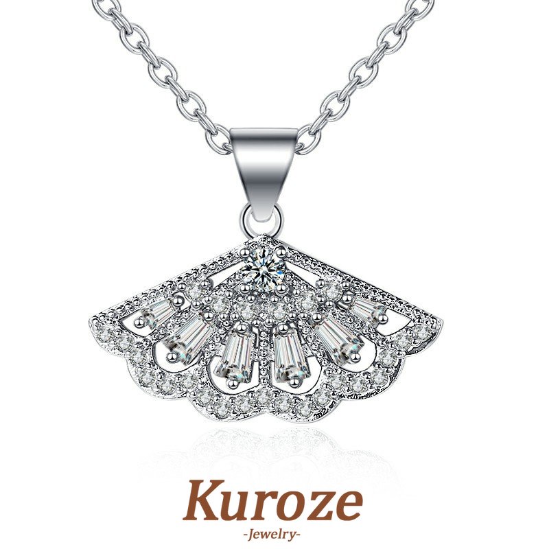 Kuroze Pt950 Platinum Fan Necklace Hollow Moissanite Pendant White Diamond Clavicle Chain