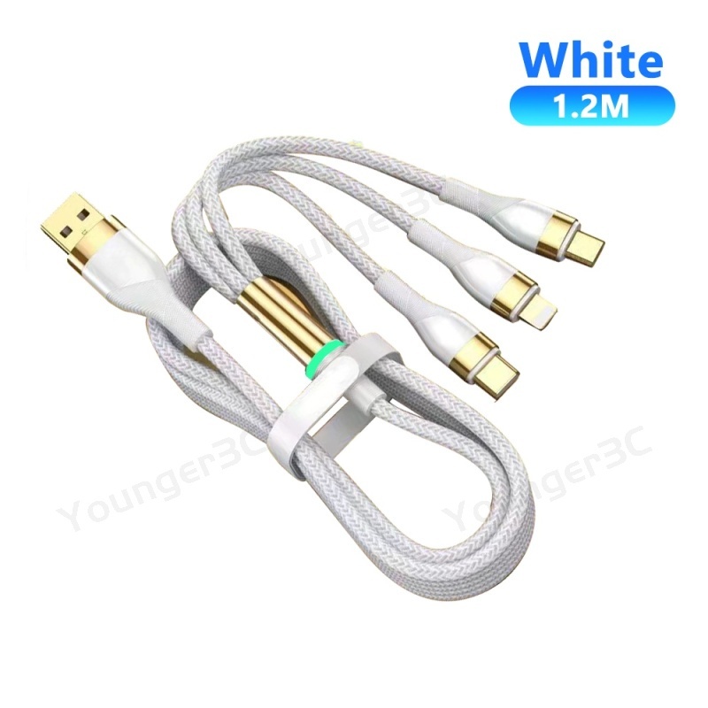 120W Super Fast Charger Cable With indicator light 3 In 1 Gilding Charger Cord 6A Nylon Braided Data Cable For ios Android Type C Mobile Phone Line