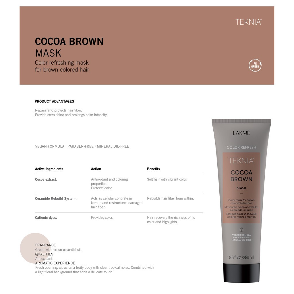 Lakme Teknia Refresh Cocoa Brown Shampoo & Mask | Color Refreshing Shampoo for Brown Colored Hair | Vegan, Paraben-free 300ml
