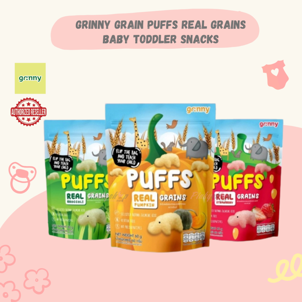 Grinny Grain Puffs Real Grains Baby | Toddler Snacks Strawberry | Pumpkin | Broccoli