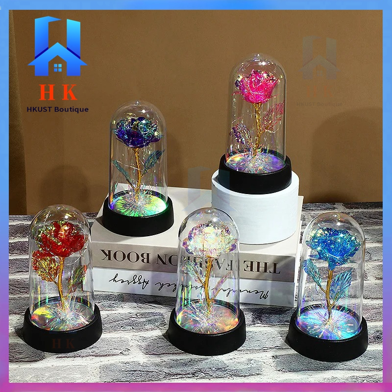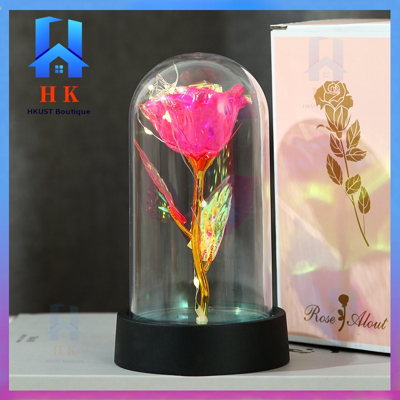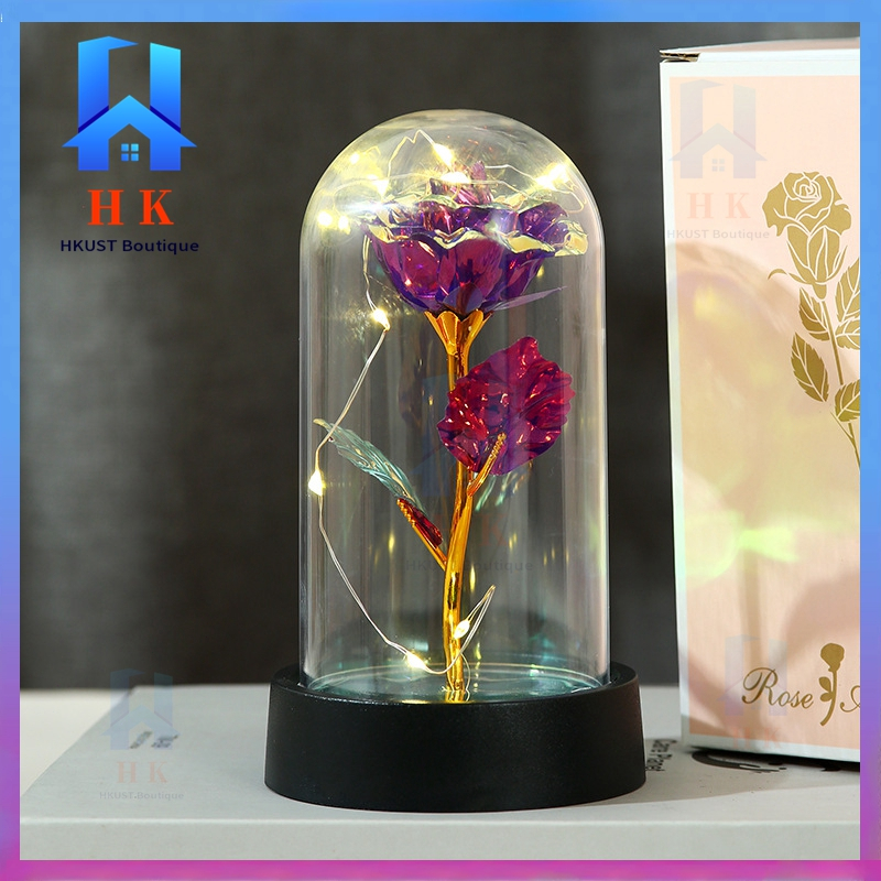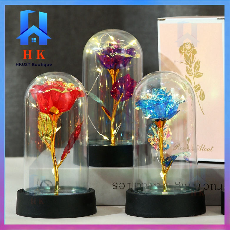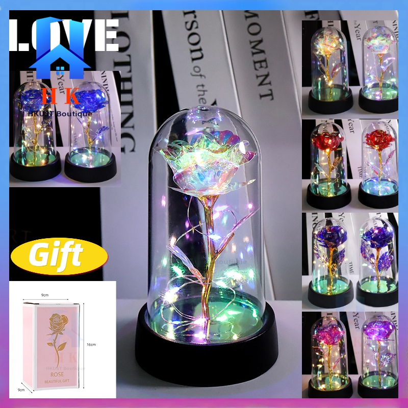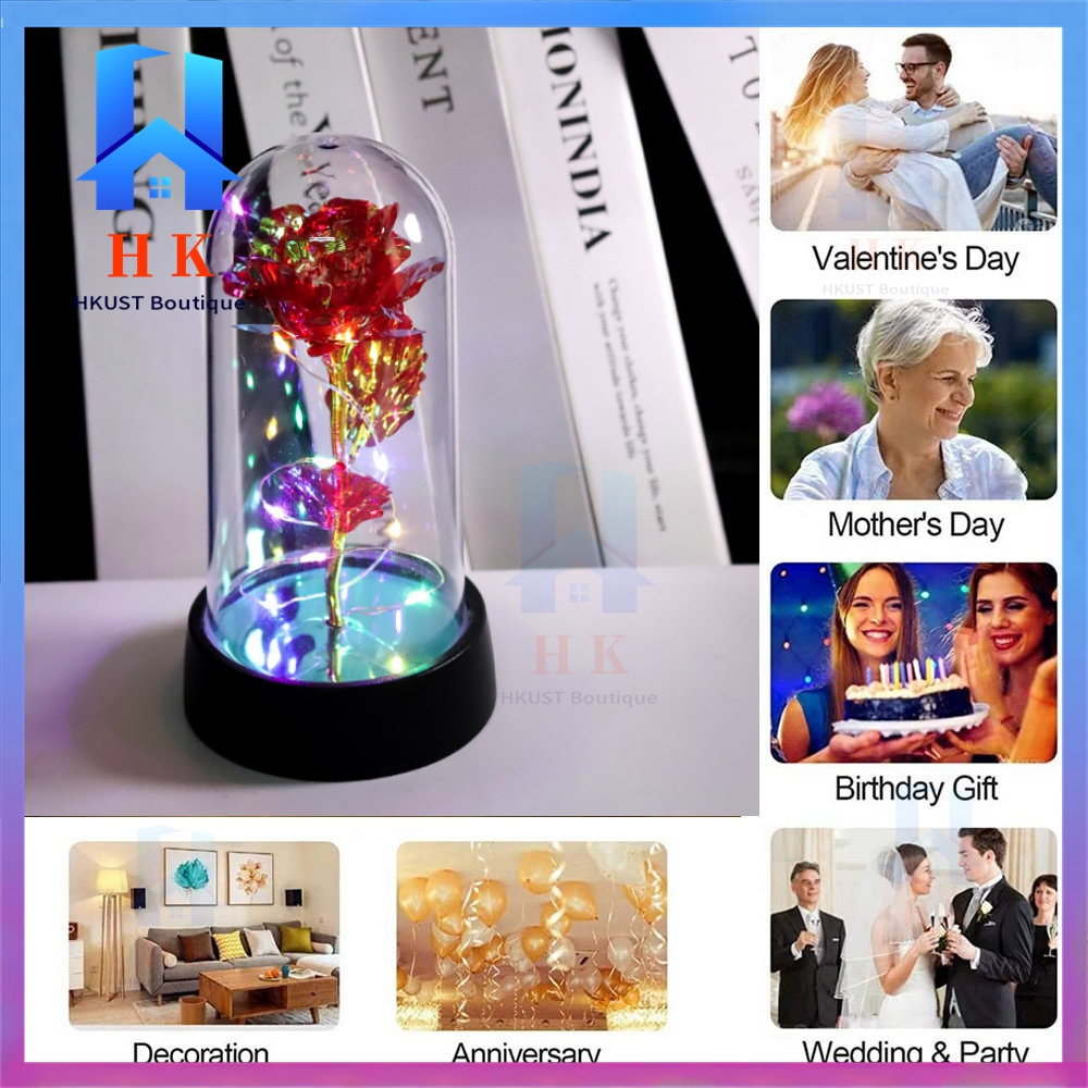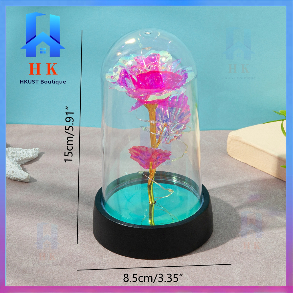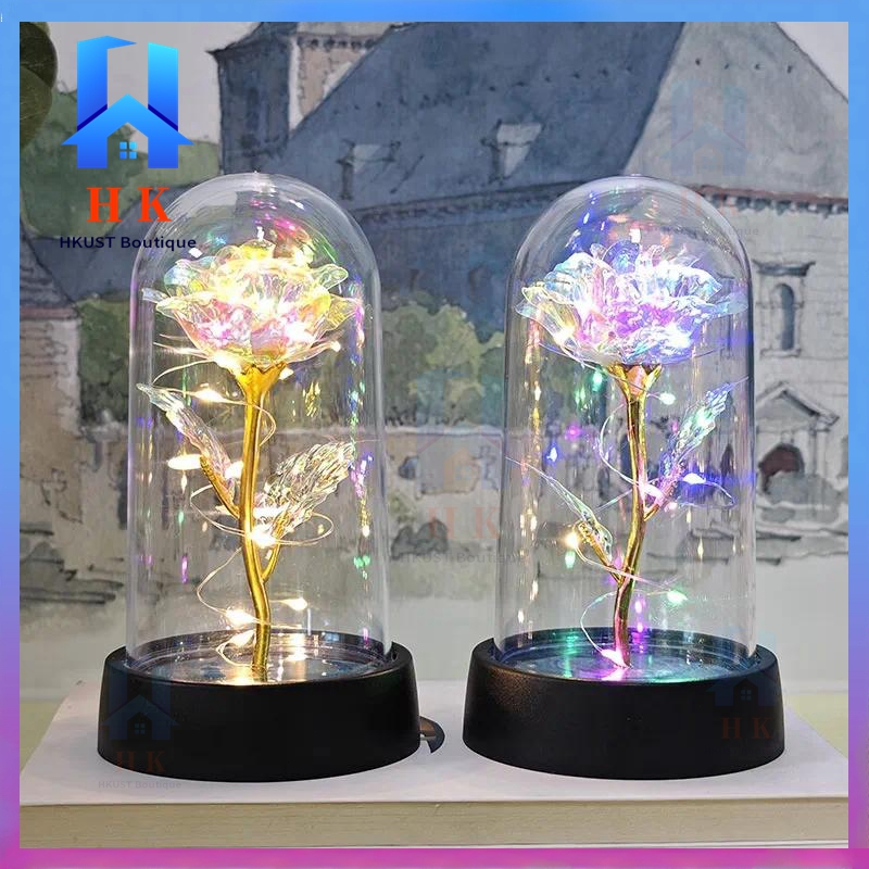 【Ready Stock】Led Light Eternal Rose Lamp Christmas Light Glass Dome Galaxy Rose Valentines Gift