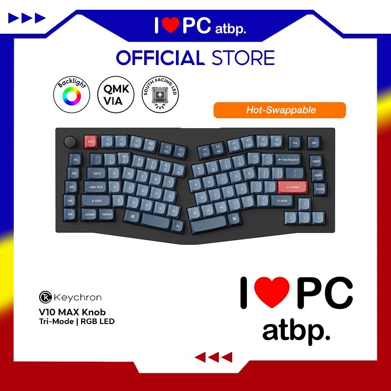 Keychron V10 Max Knob QMK/VIA Mechanical Keyboard, Carbon Black, 75% Alice, Tri-mode, RGB, Hot-Swap