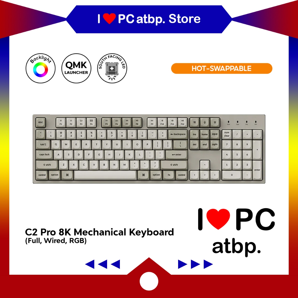 Keychron C2 Pro 8K QMK Mechanical Keyboard(Full, Wired, RGB LED, QMK/Launcher, Hotswap)