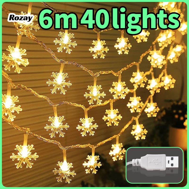 6M Christmas LED Snowflake String Lights USB Christmas lights Christmas Tree Decorative Lights