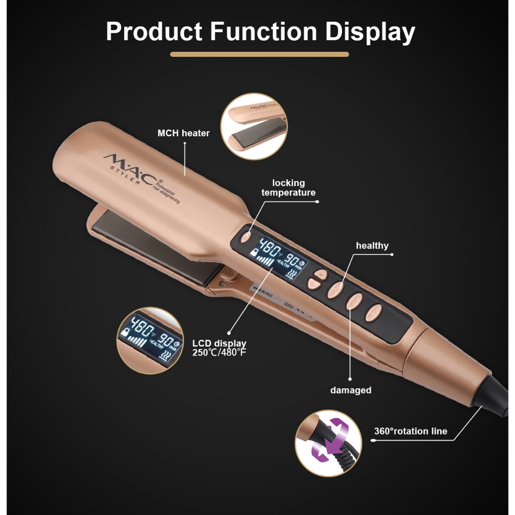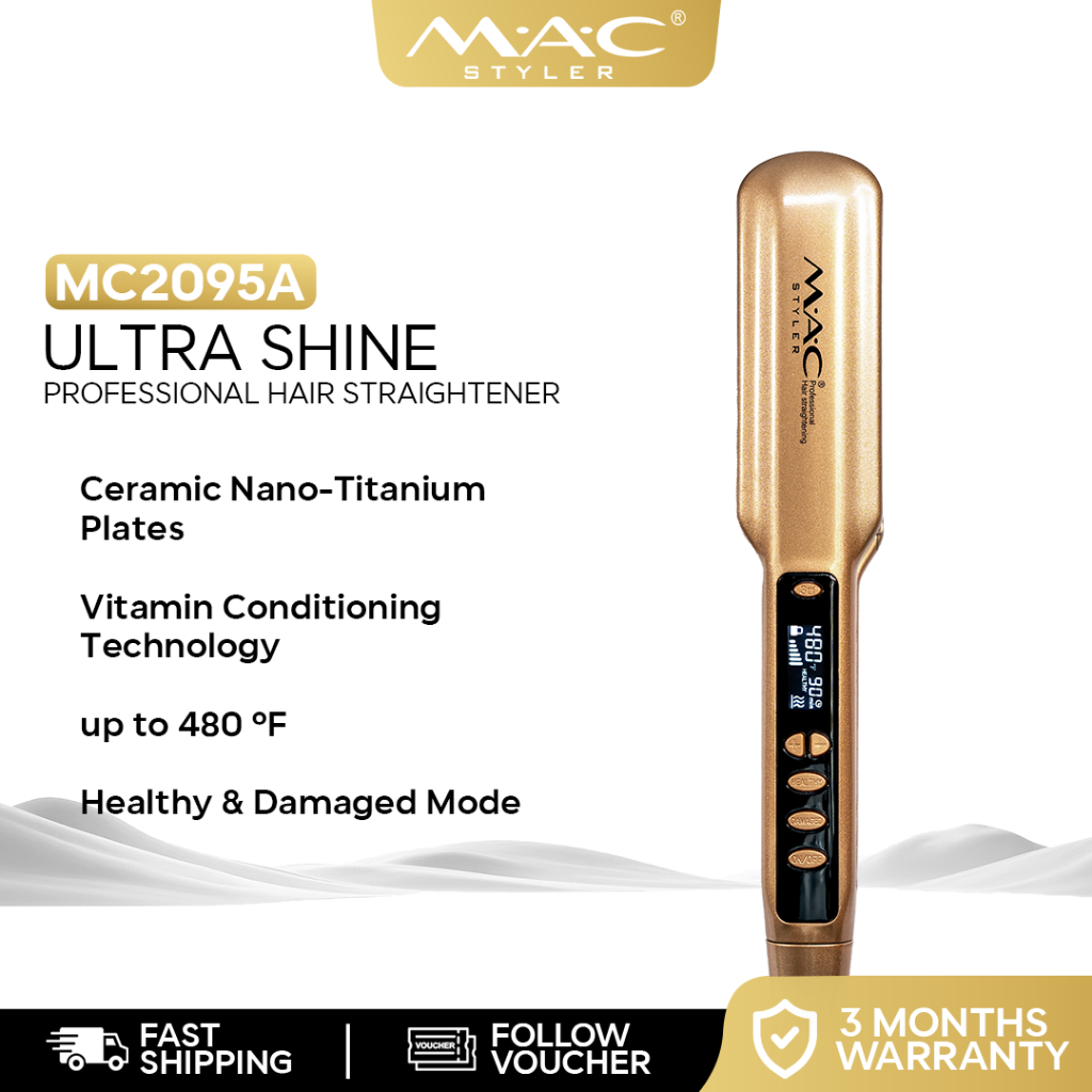 MAC Styler Ultra Shine Professional Gold Hair Straightener Flat Iron MC2095A