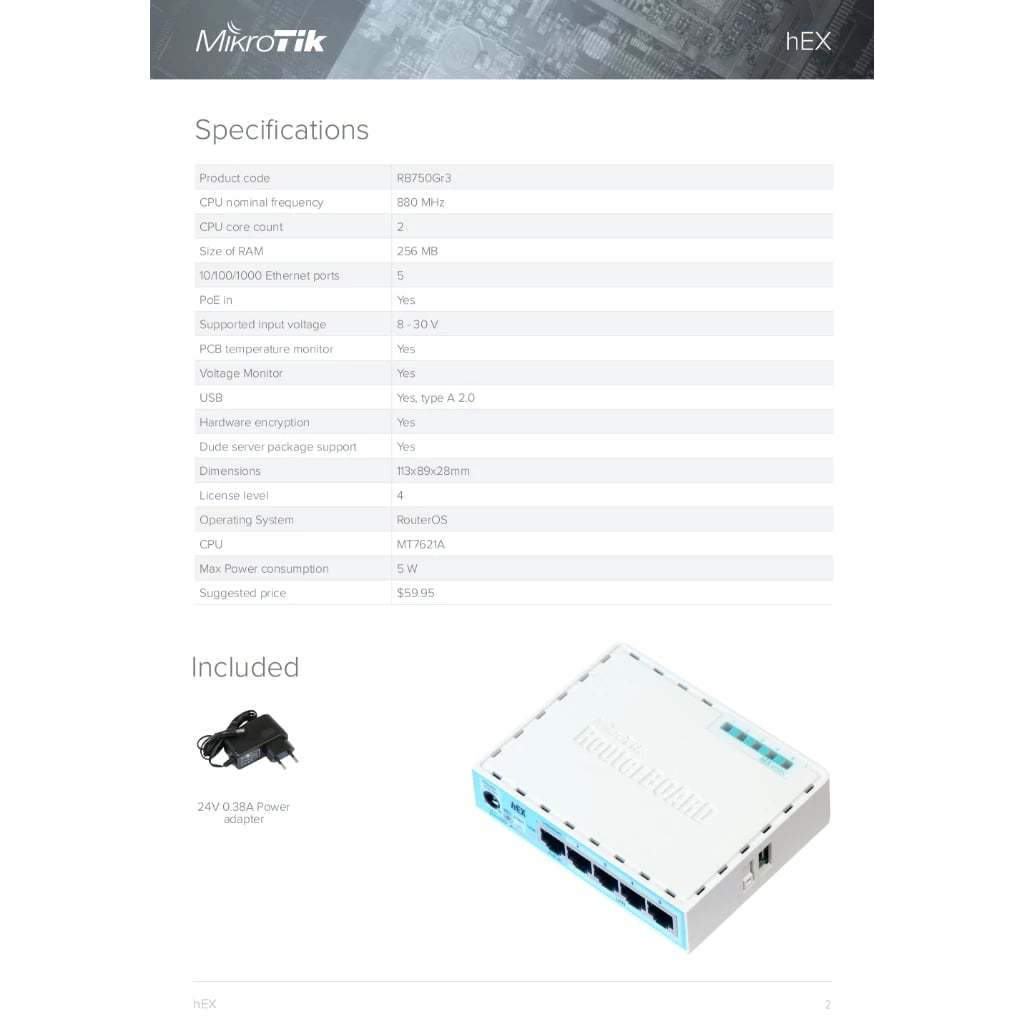 MikroTik hEX RB750Gr3 - 5-Port Gigabit Managed Router w/ Anti-Lag , PPPOE, Hotspot, Starlink