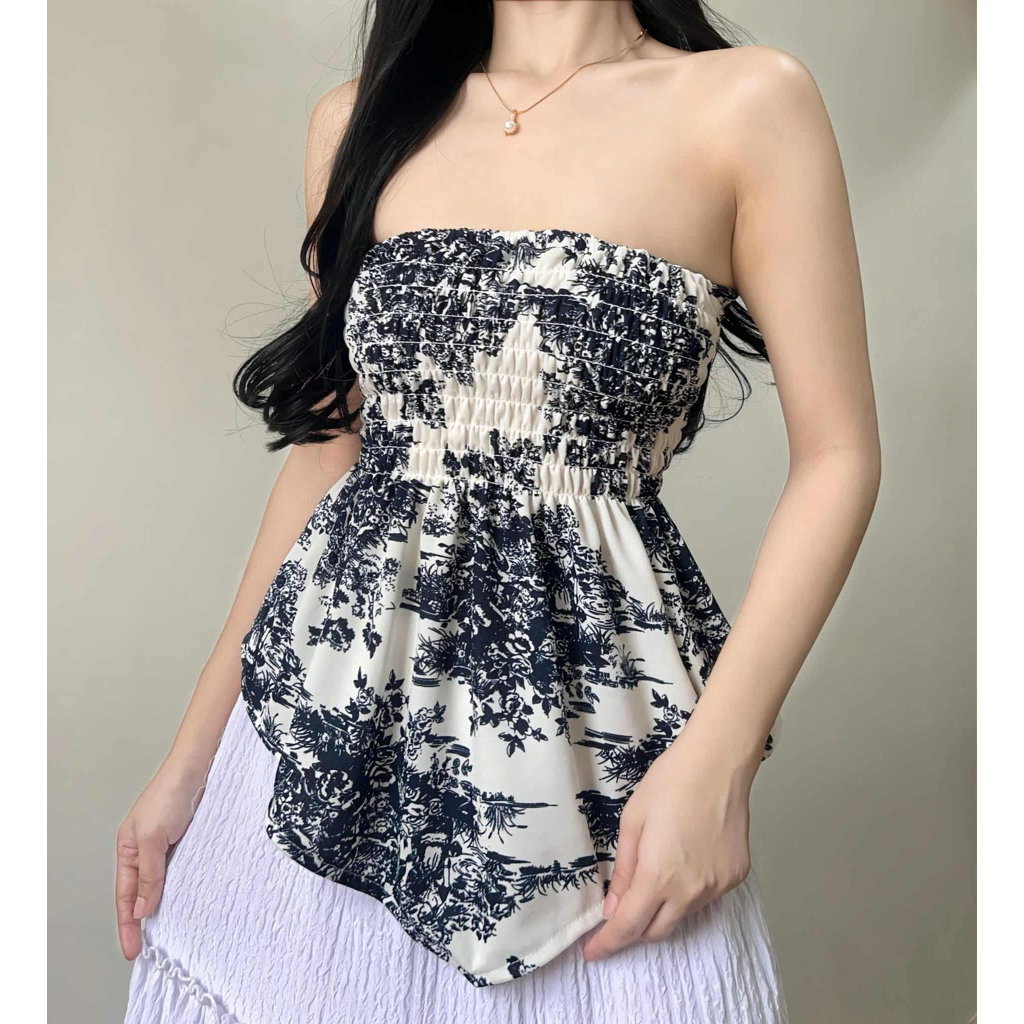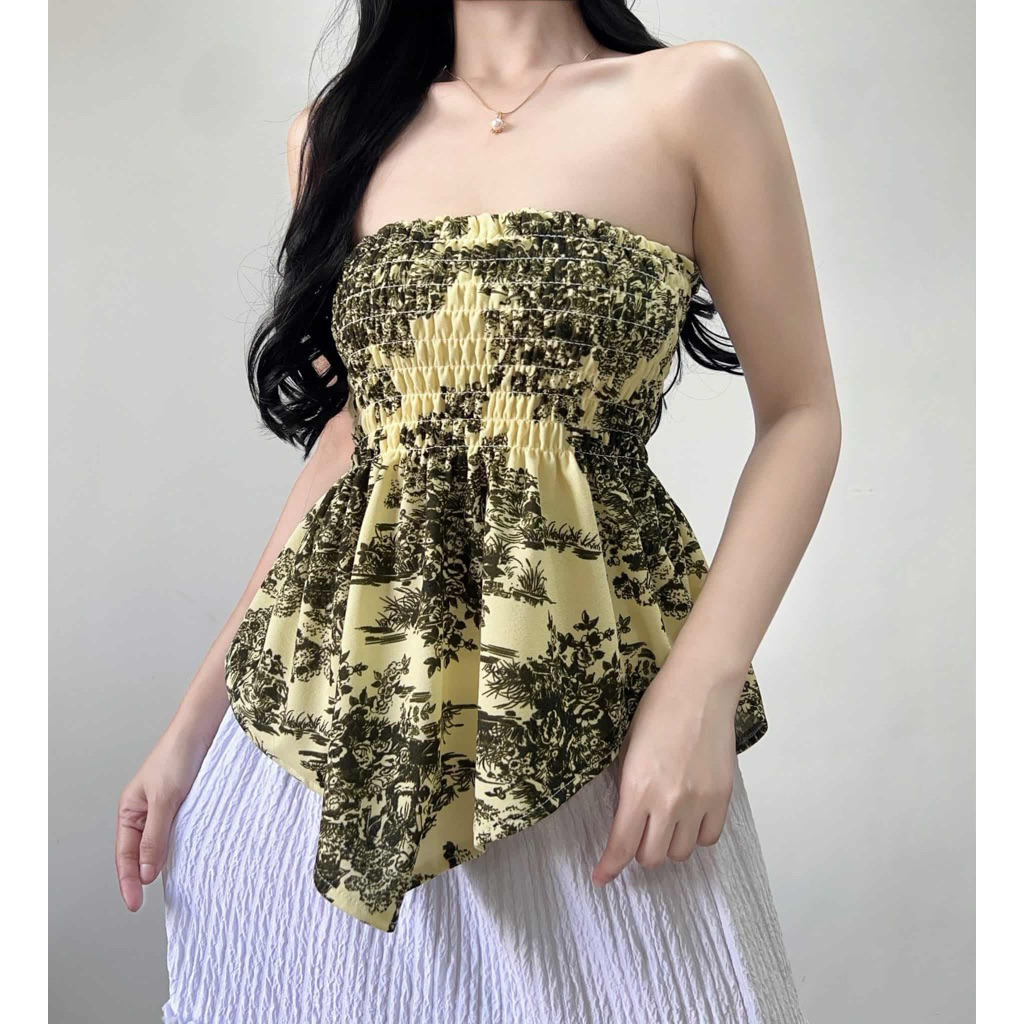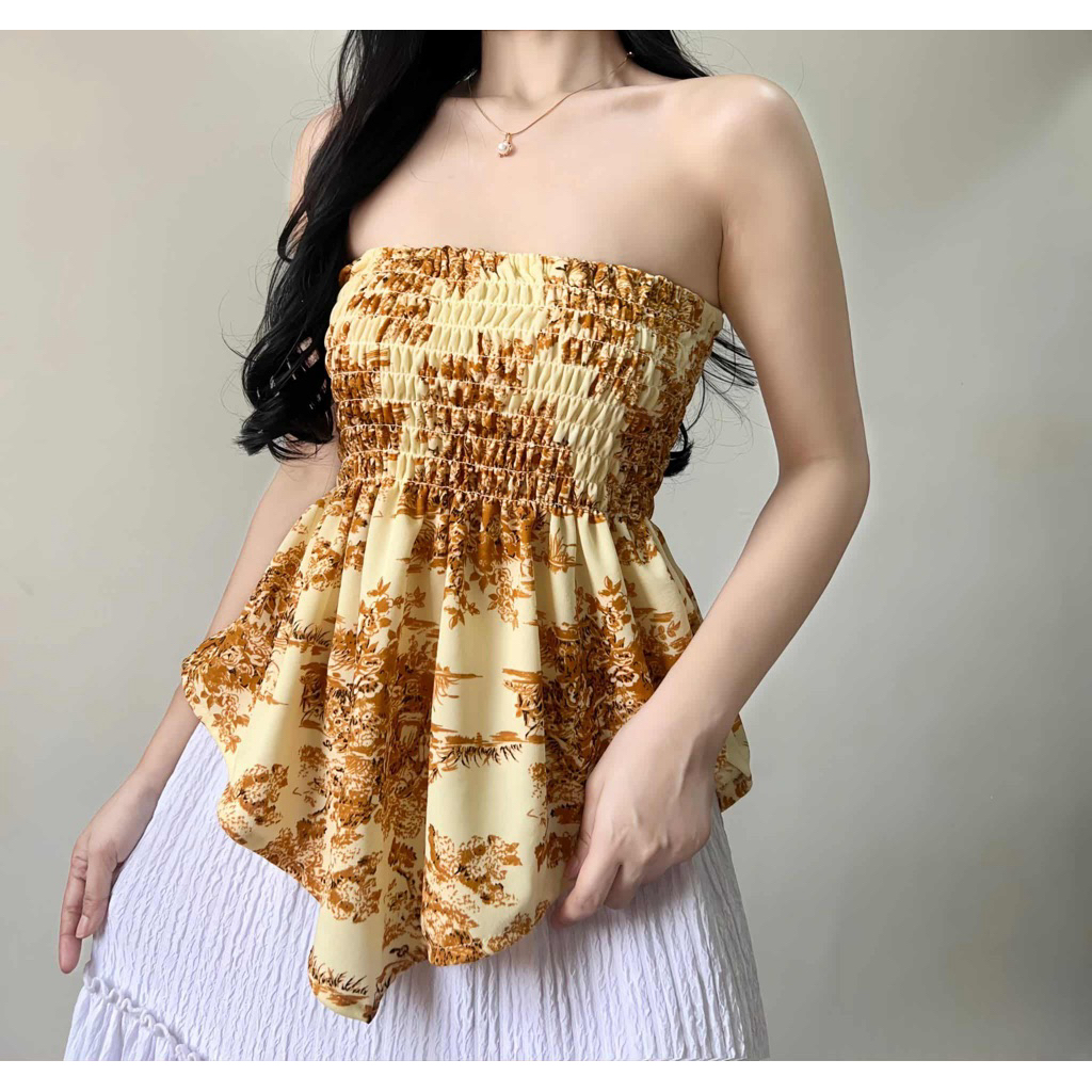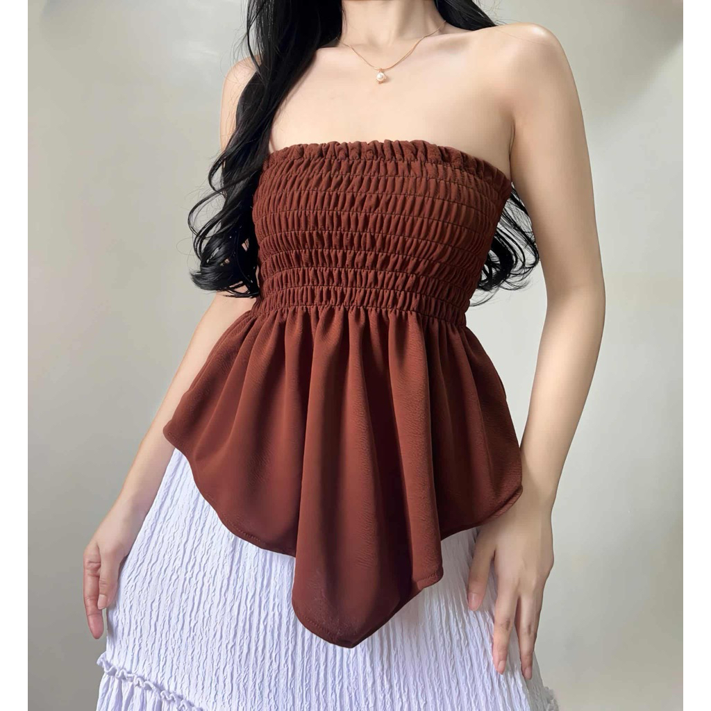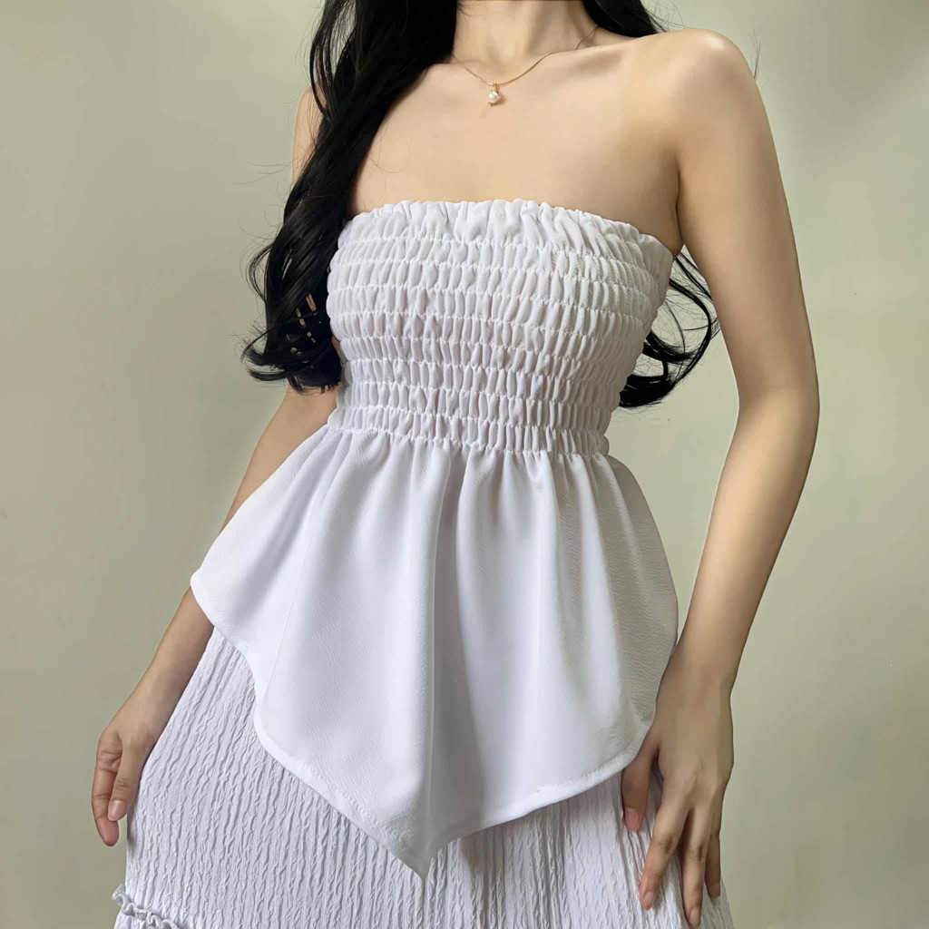Daenerys Smocking Tube Top - Women's Casual Crepe Top for Comfortable Fit and Elegance