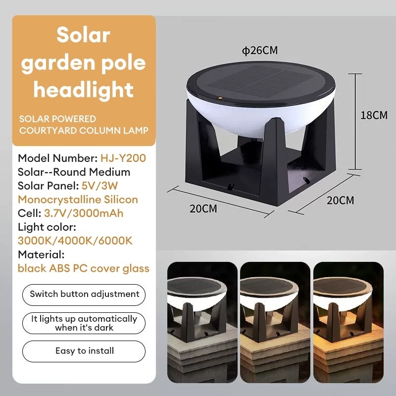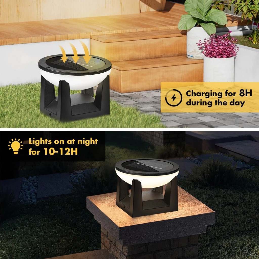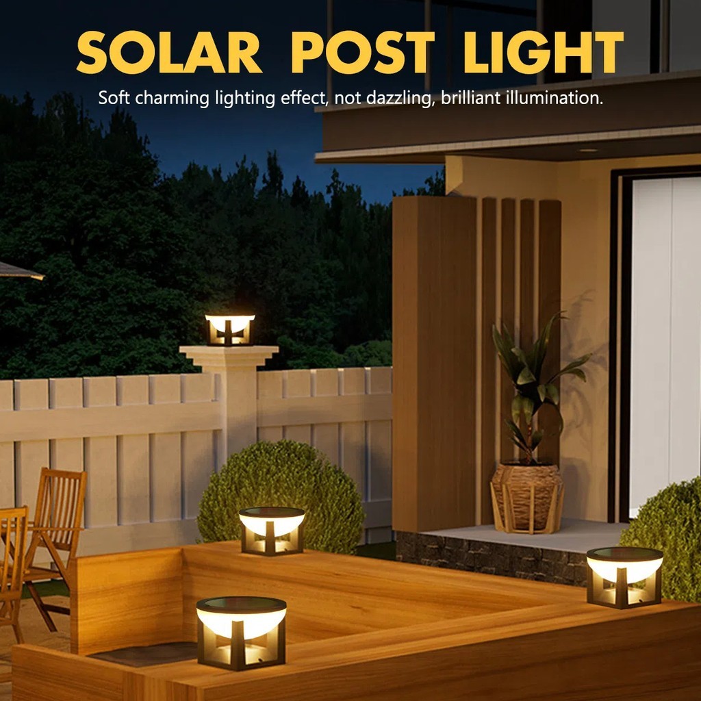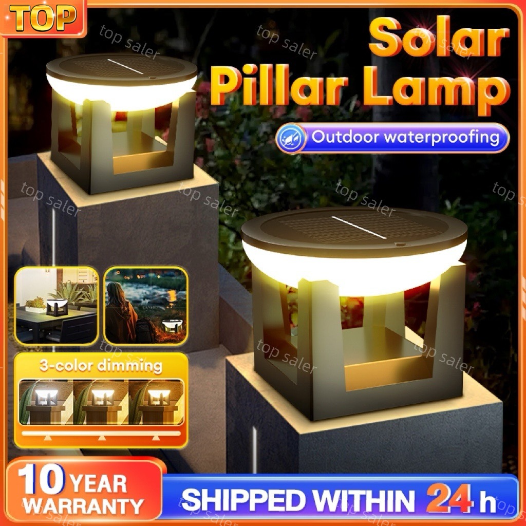 Solar Gate Pillar Light Solar post light LED 3 Tricolor Outdoor Lamp Waterproof IP68 Gate Wall Light