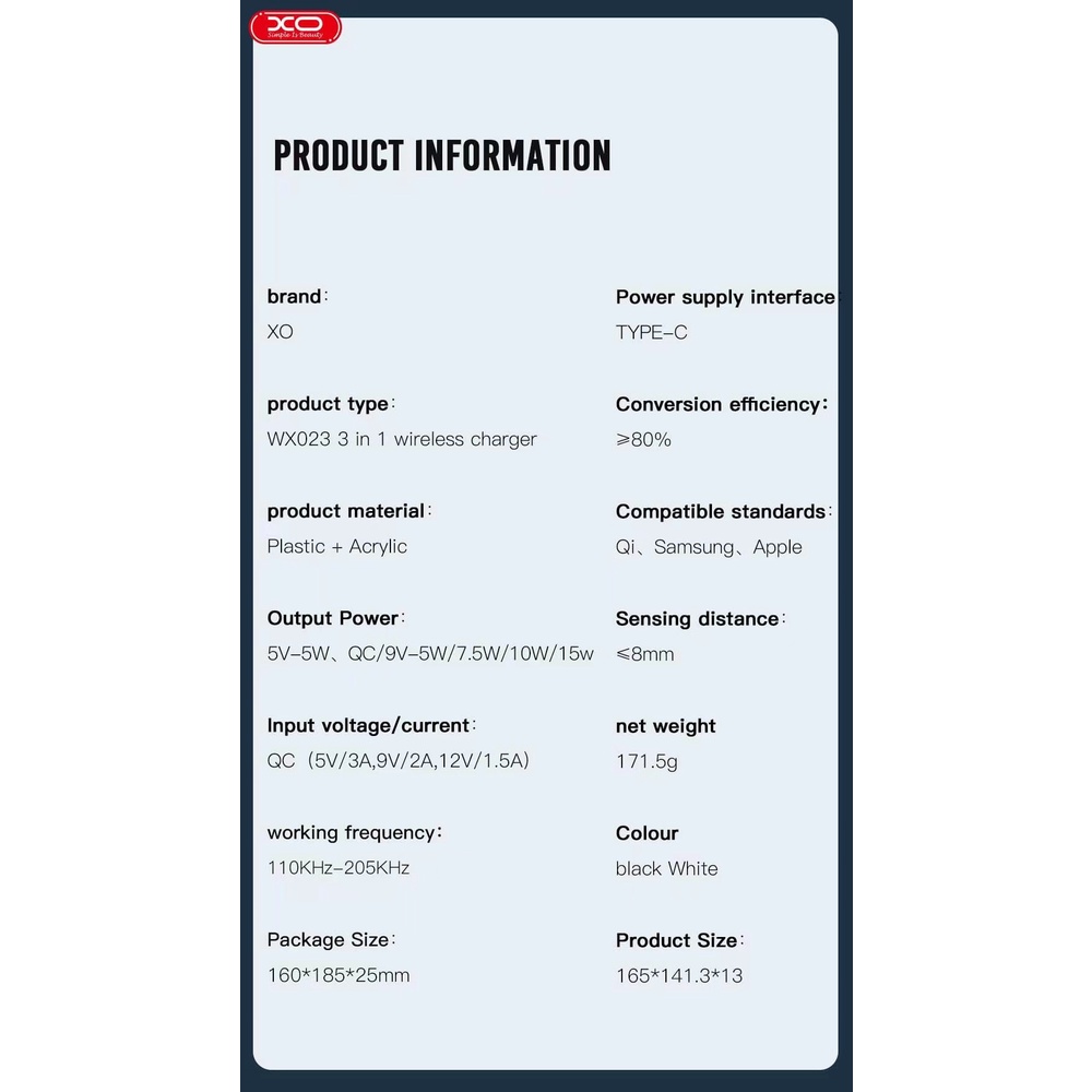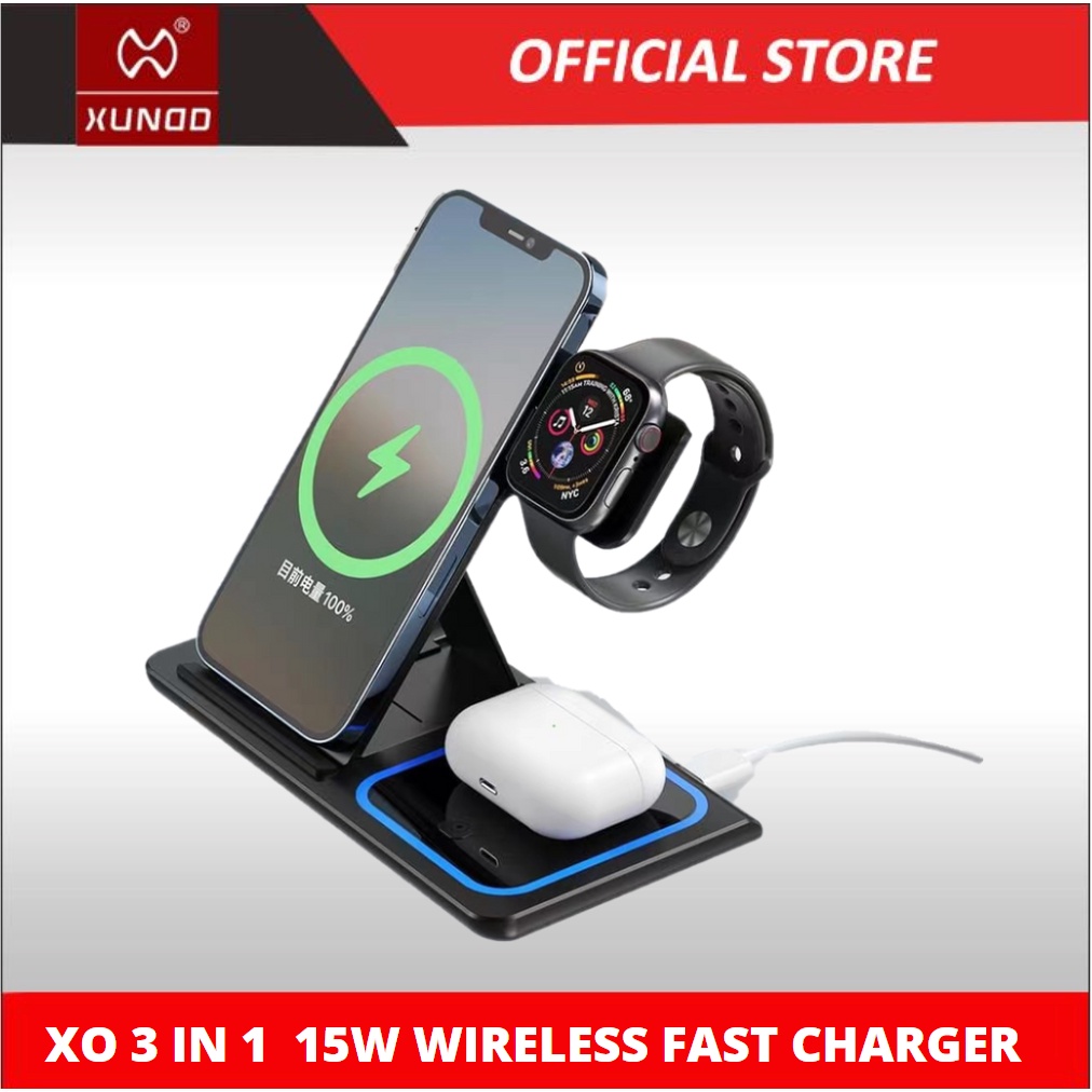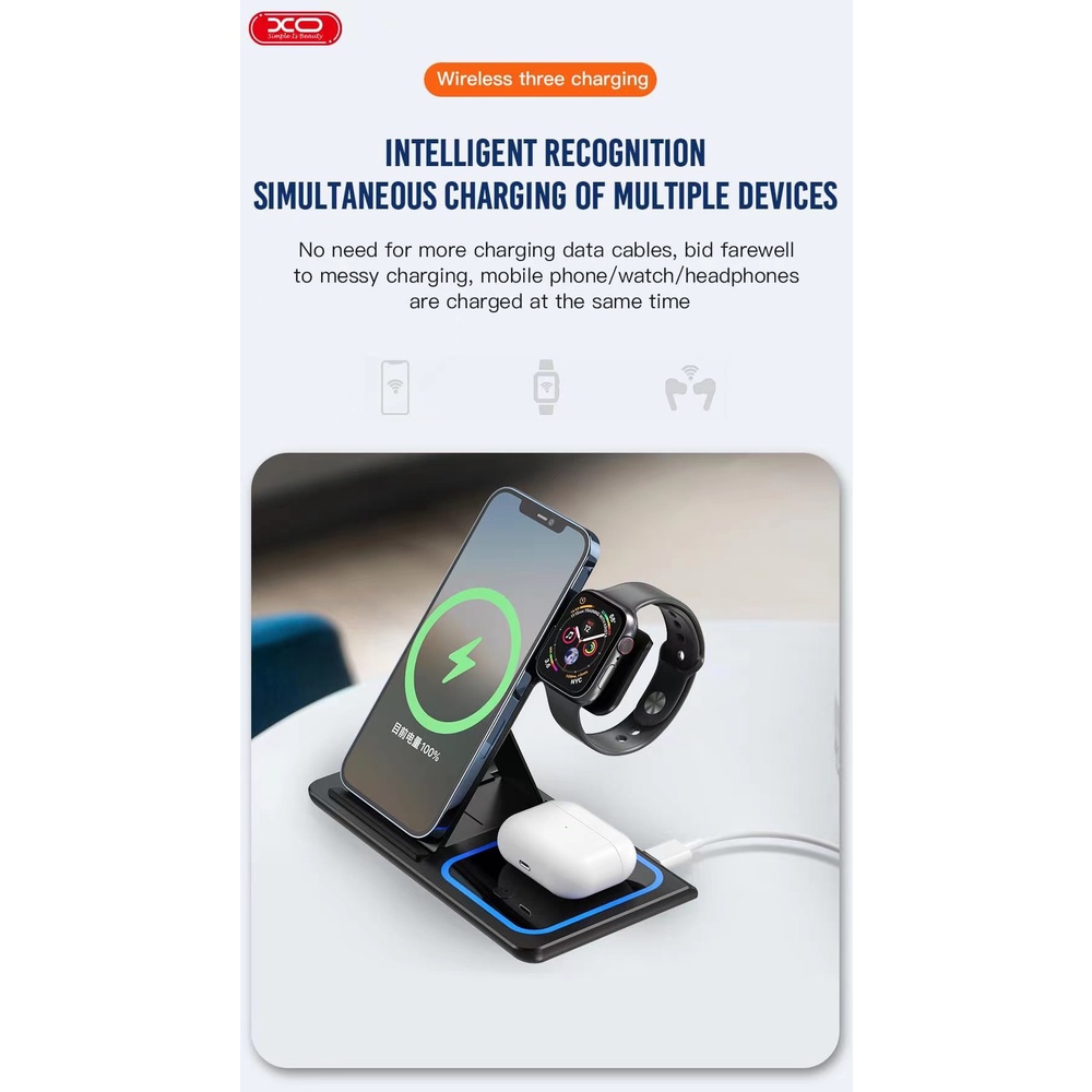 3 IN 1 Wireless Charger Dock Stand Station For Iwatch Airpods Apple Samsung XO-WX023