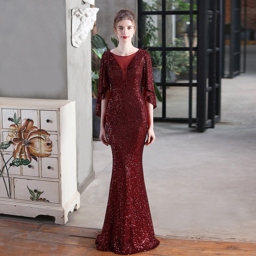 Evening dress women's new banquet Sequin fishtail prom party dress long gown formal birthday dress wedding dress