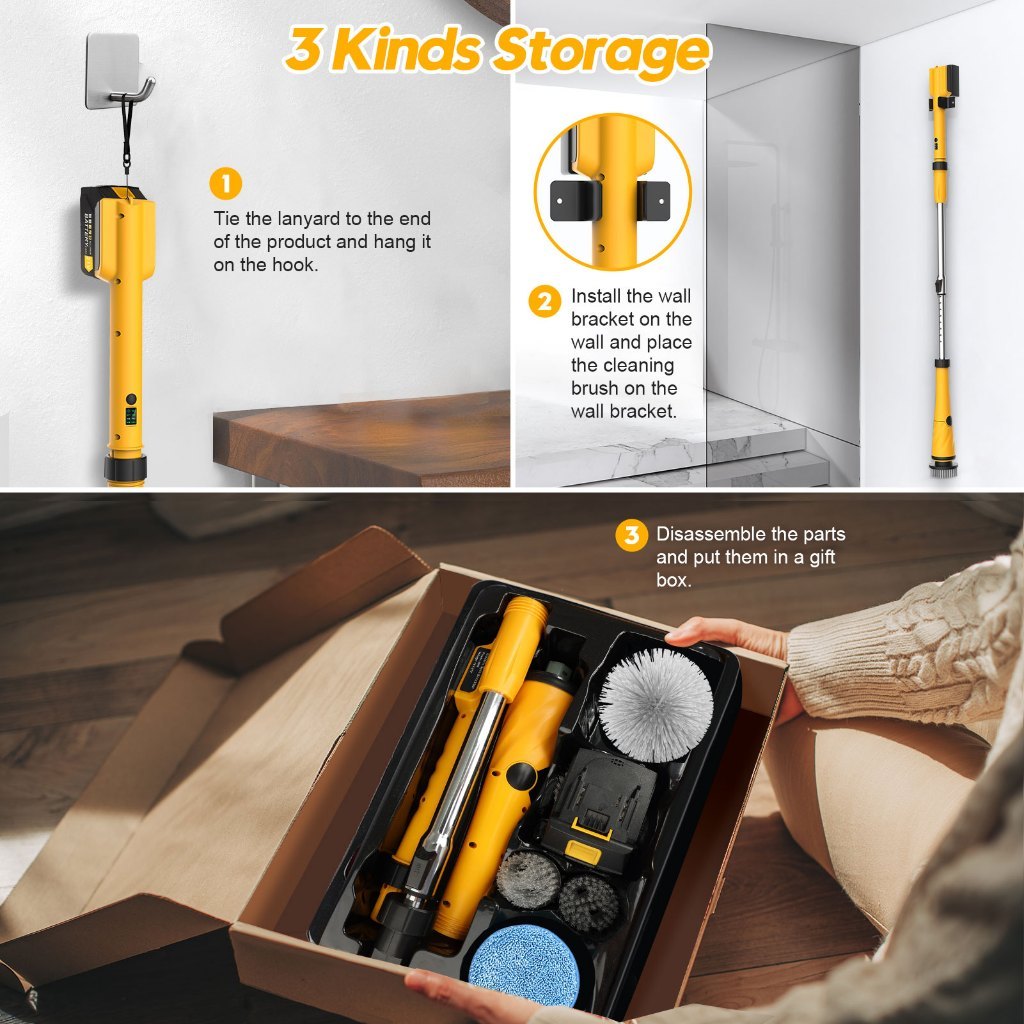 1500RMP Electric spin scrubber Handheld Multi-functional LCD digital display powerful power brush