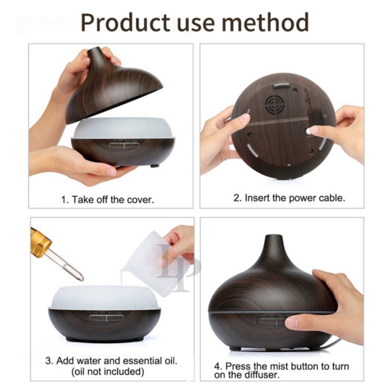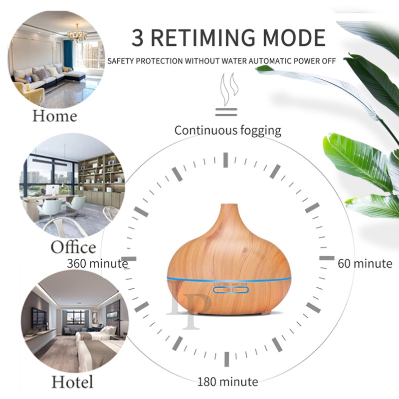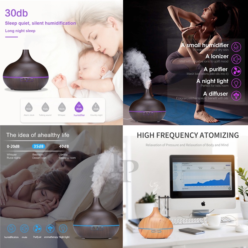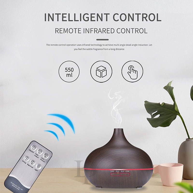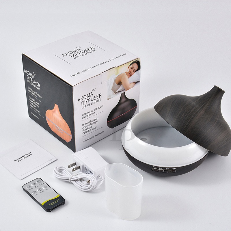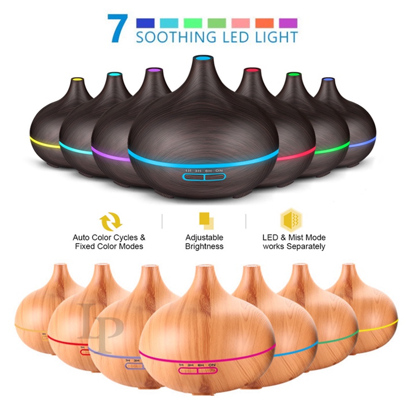 550ML 7 Color LED Wood Grain Humidifier with Essential Oil Aroma Diffuser Ultrasonic Air Purifier