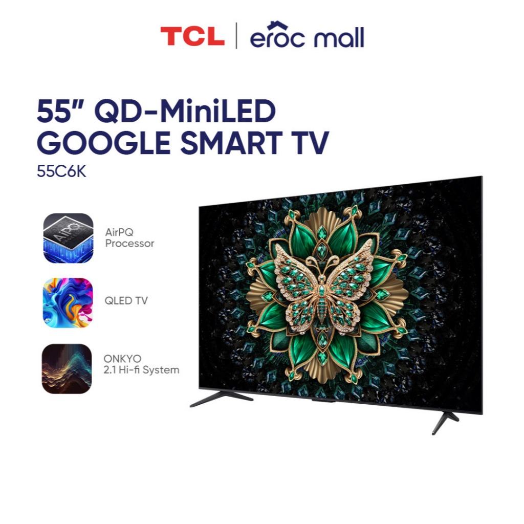TCL 55C6K QD-MiniLED 4K Google Smart TV - Precise Dimming Series, High HDR Brightness, 144Hz RR
