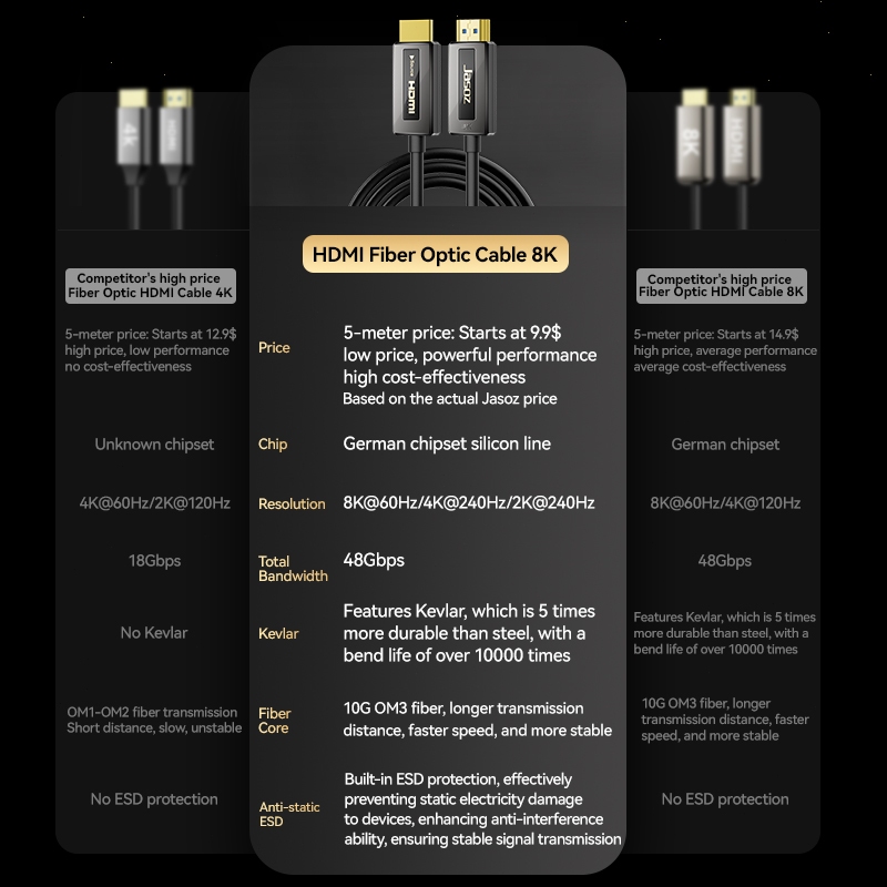 Jasoz Certified 8K 60Hz 4K 120Hz HDMI Fiber Optic Cable HDMI 2.1 48Gbps with PS5 Xbox HDTV Projector