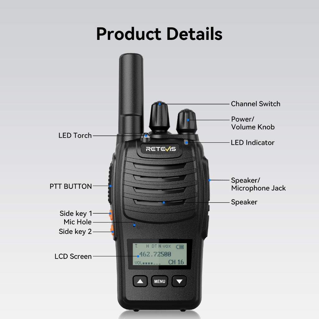 Retevis H777D Two-Way Radio LCD Screen 1200mAh Battery Type-C and Base Charger VOX NOAA for Commercial