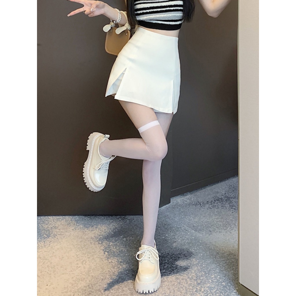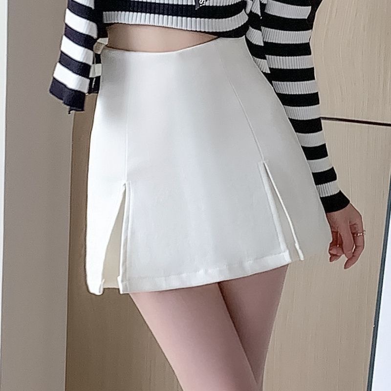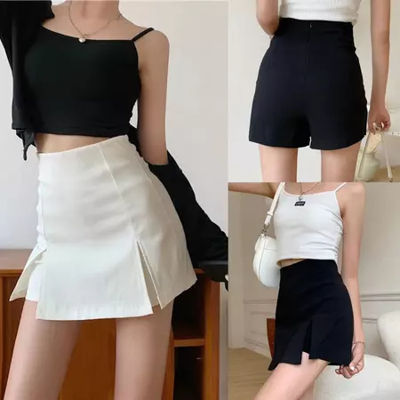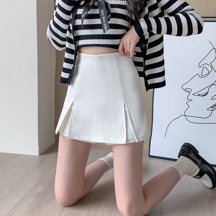 Korean High Waist Skirt Shorts for Women White Black Skirt With Slit Woman Mini Skirt Skort Palda