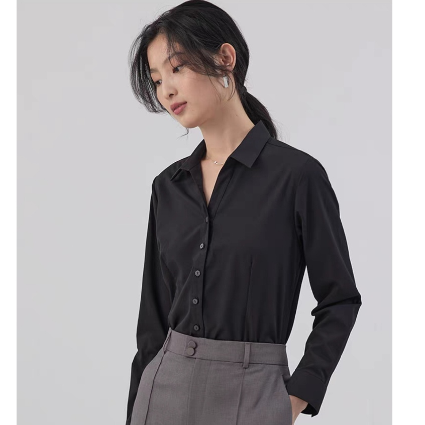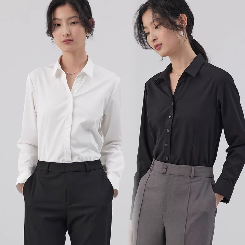 HUILISHI S-XXL High quality Women's long sleeve white black cotton shirt suitable for office