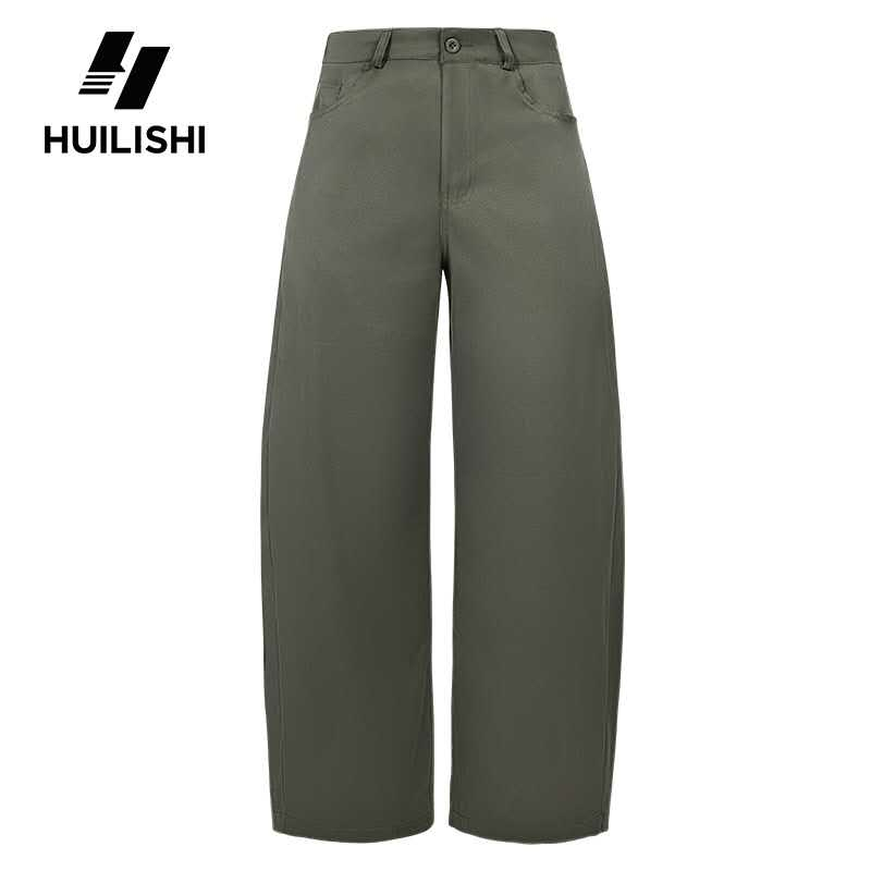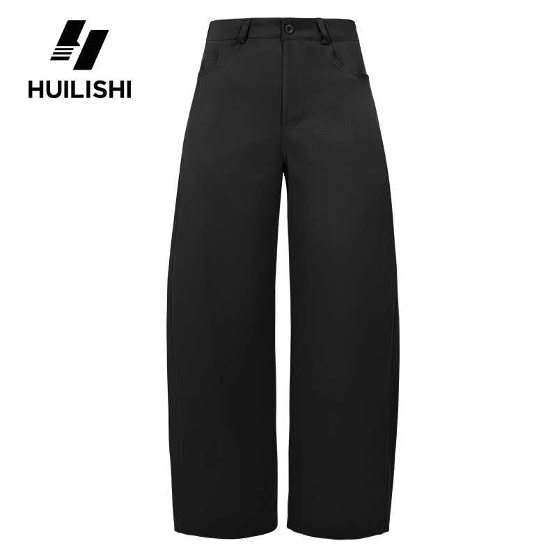 HUILISHI Korean style fashionable loose high-waisted straight leg casual curved pants