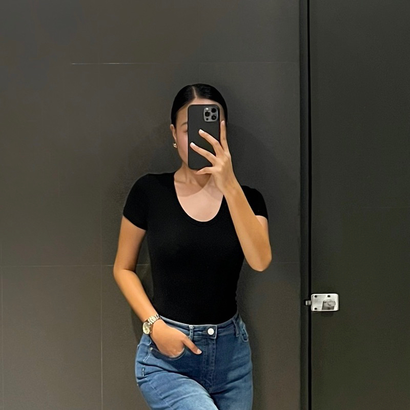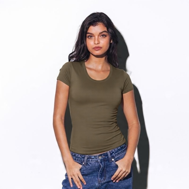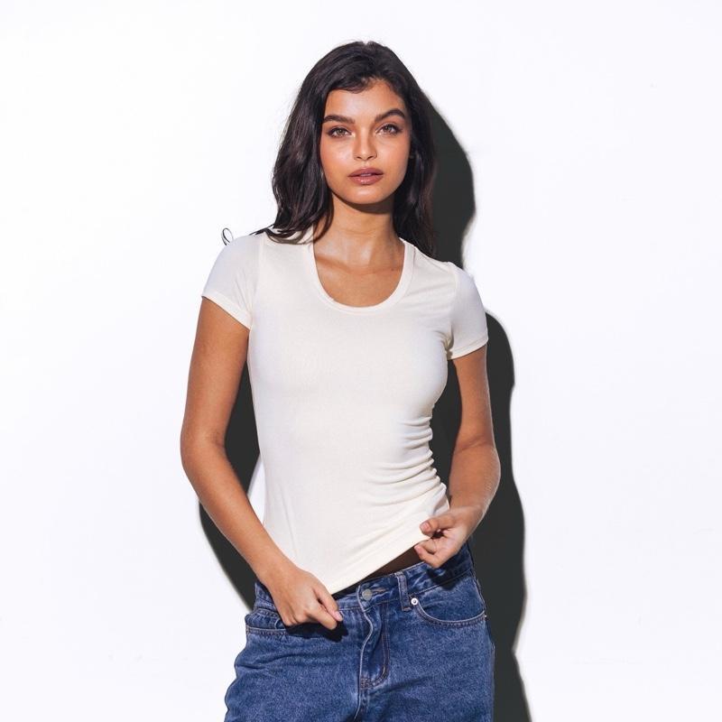 MERA Emilee Deep Round Neck Fitted Tee