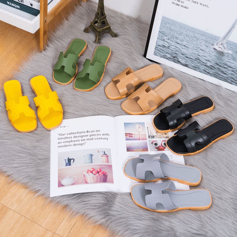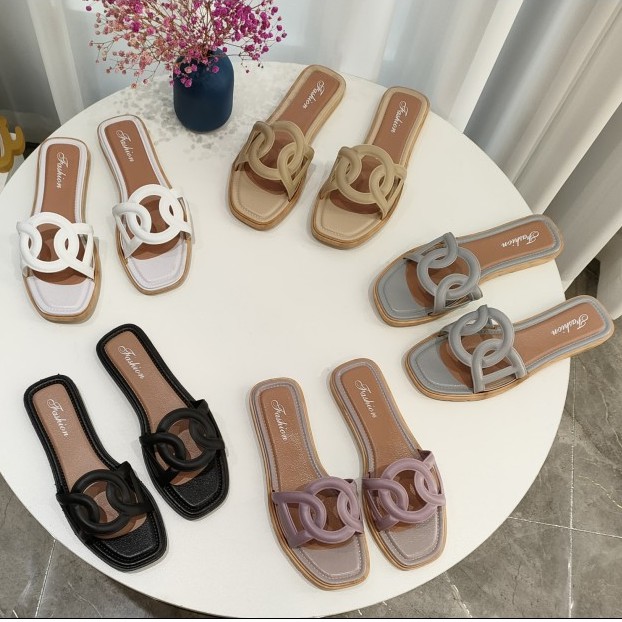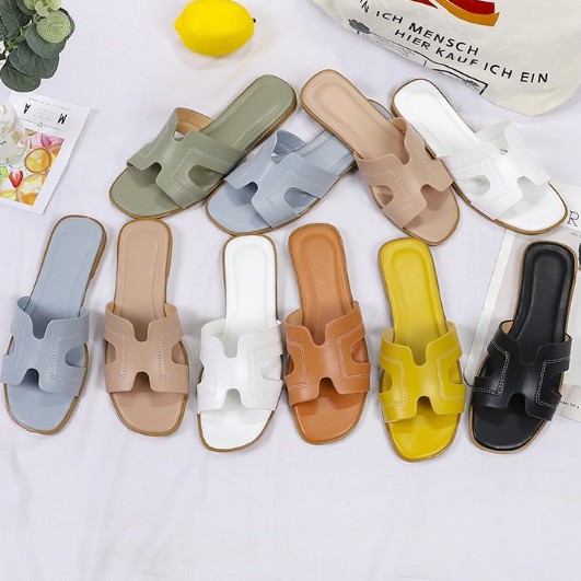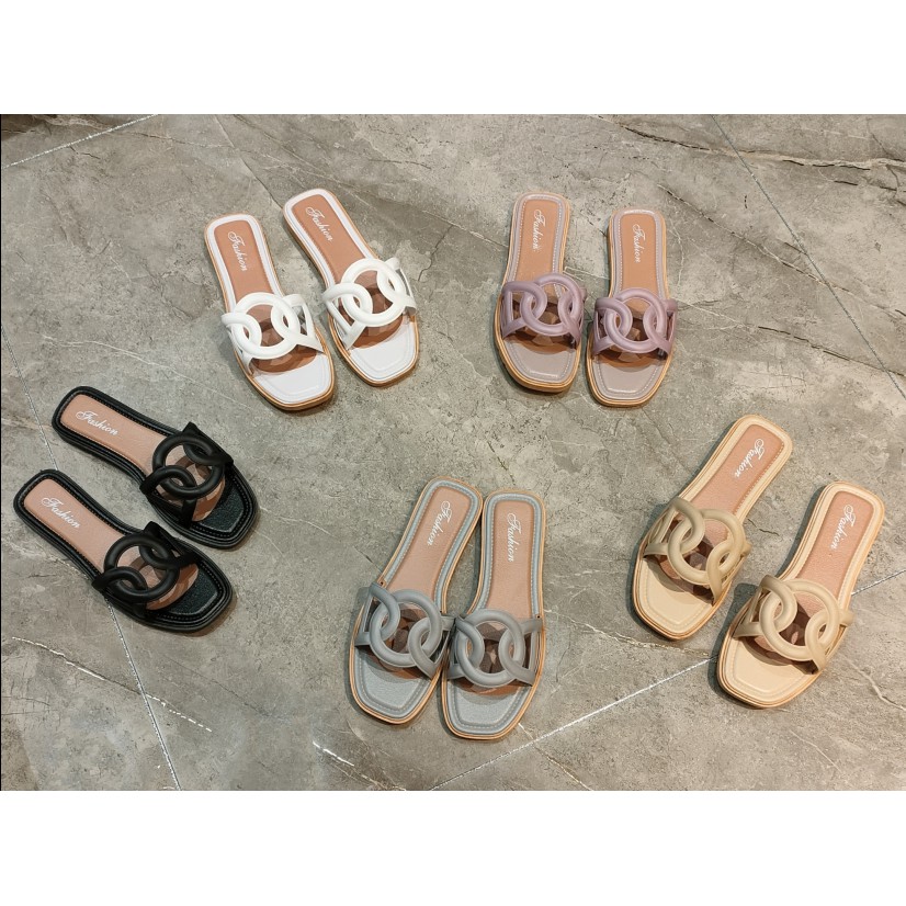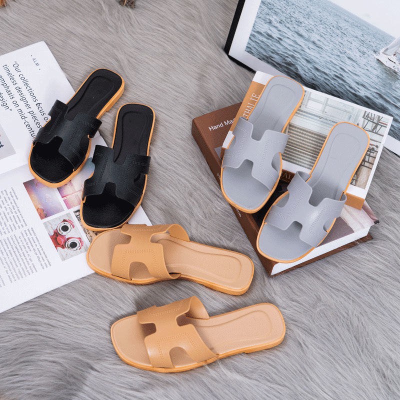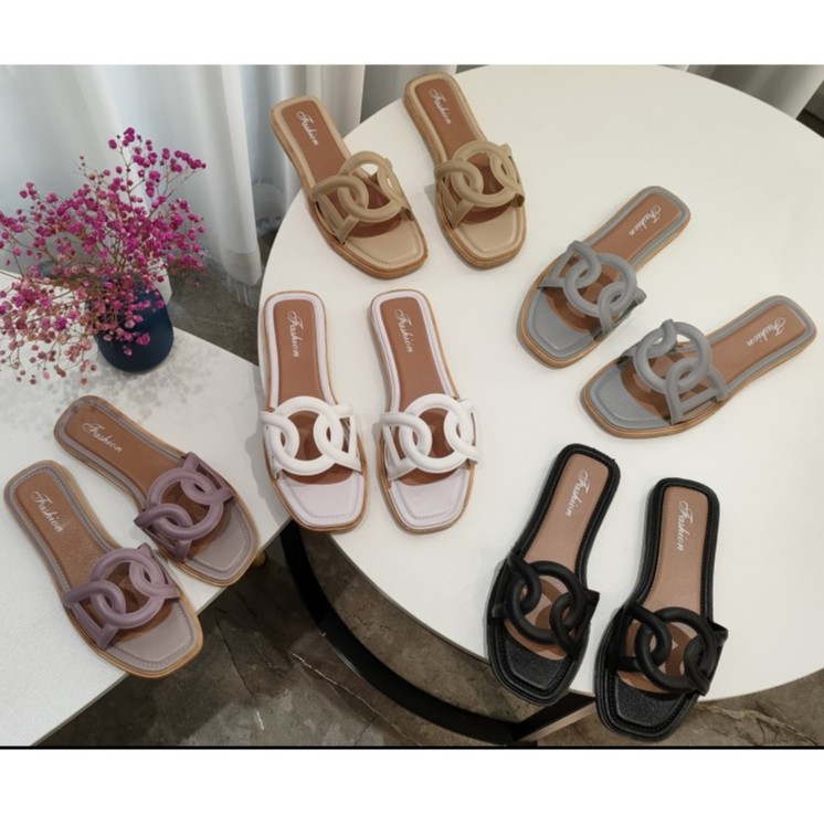 LALA Korean fashionable Classic trend womens flat slippers footwear (add one size)
