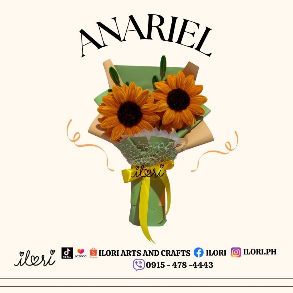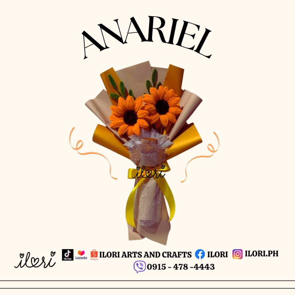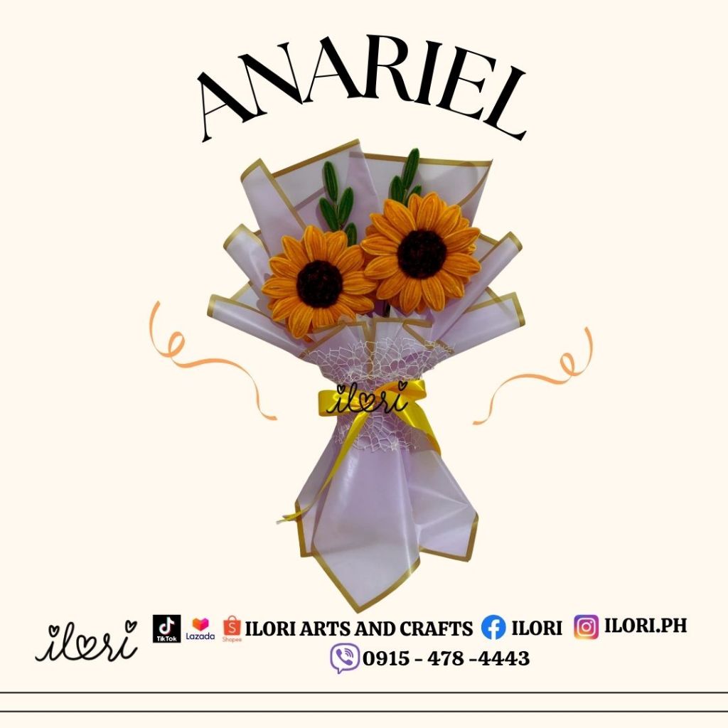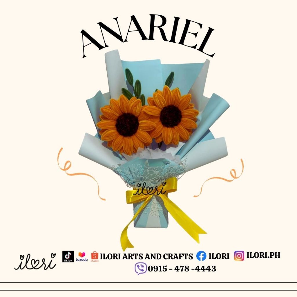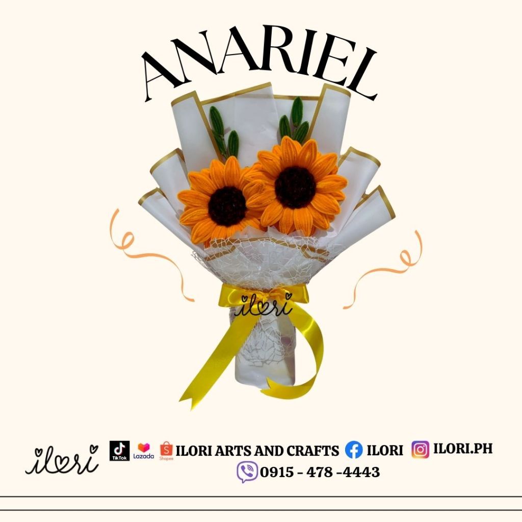 Ilori’s Anariel - 2 Sunflower + 2 Leaves Fillers Bouquet (Made of Fuzzy Wire) WITH PREMIUM BOX
