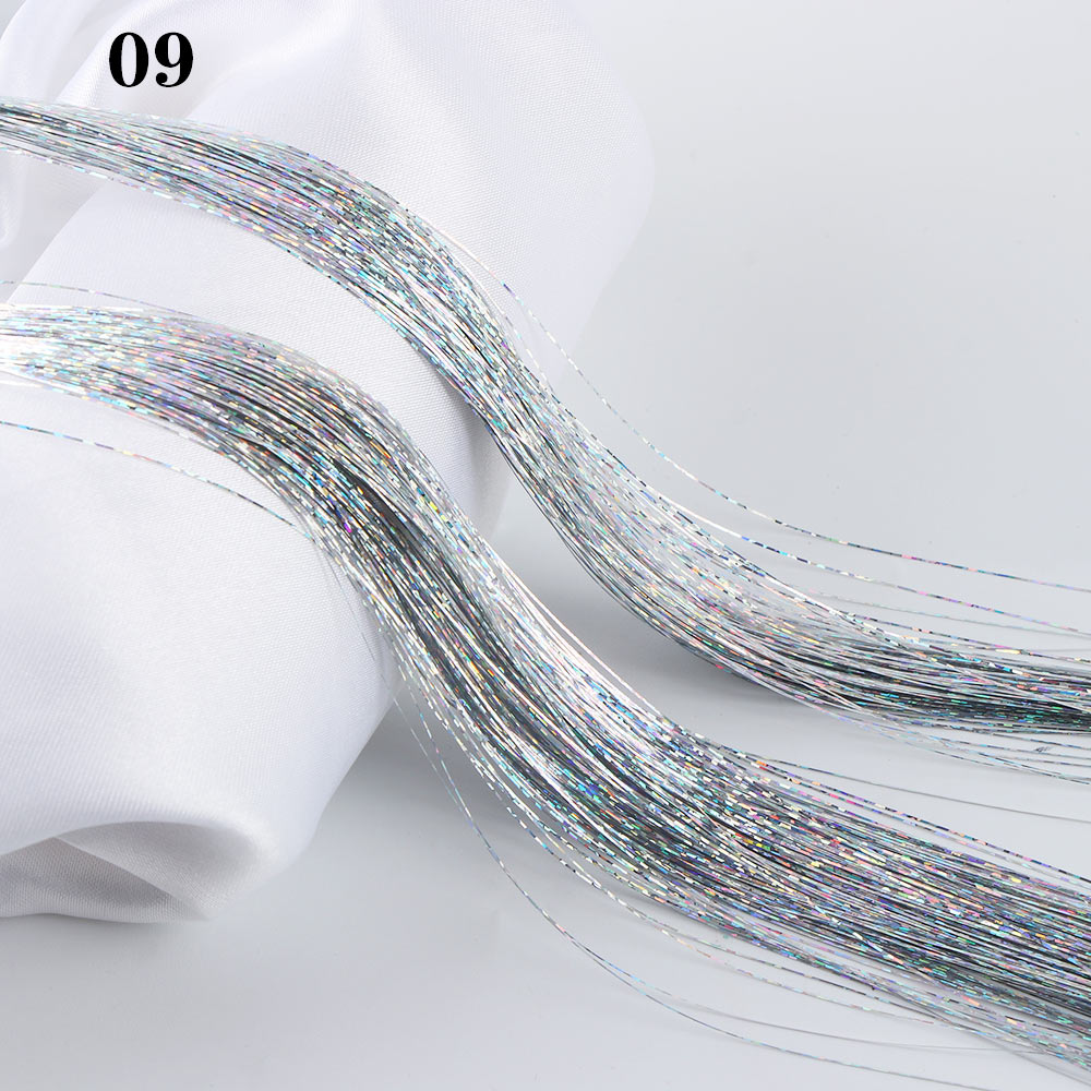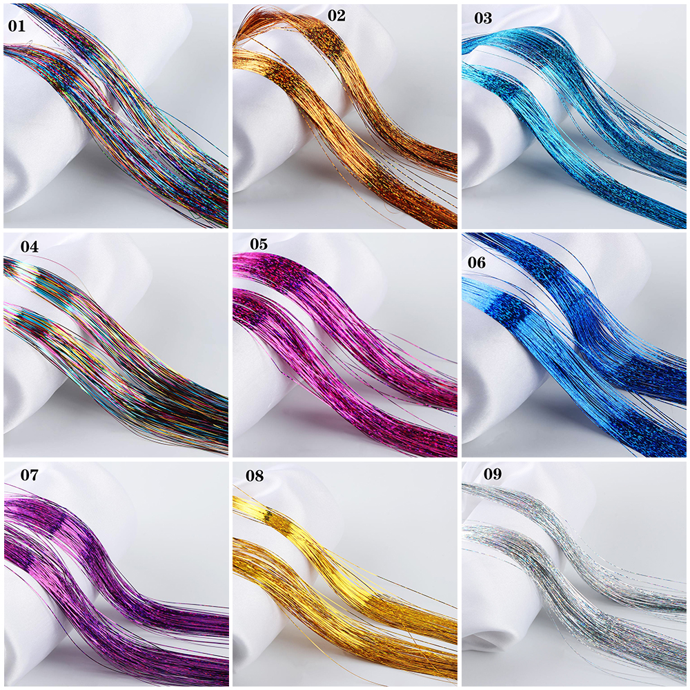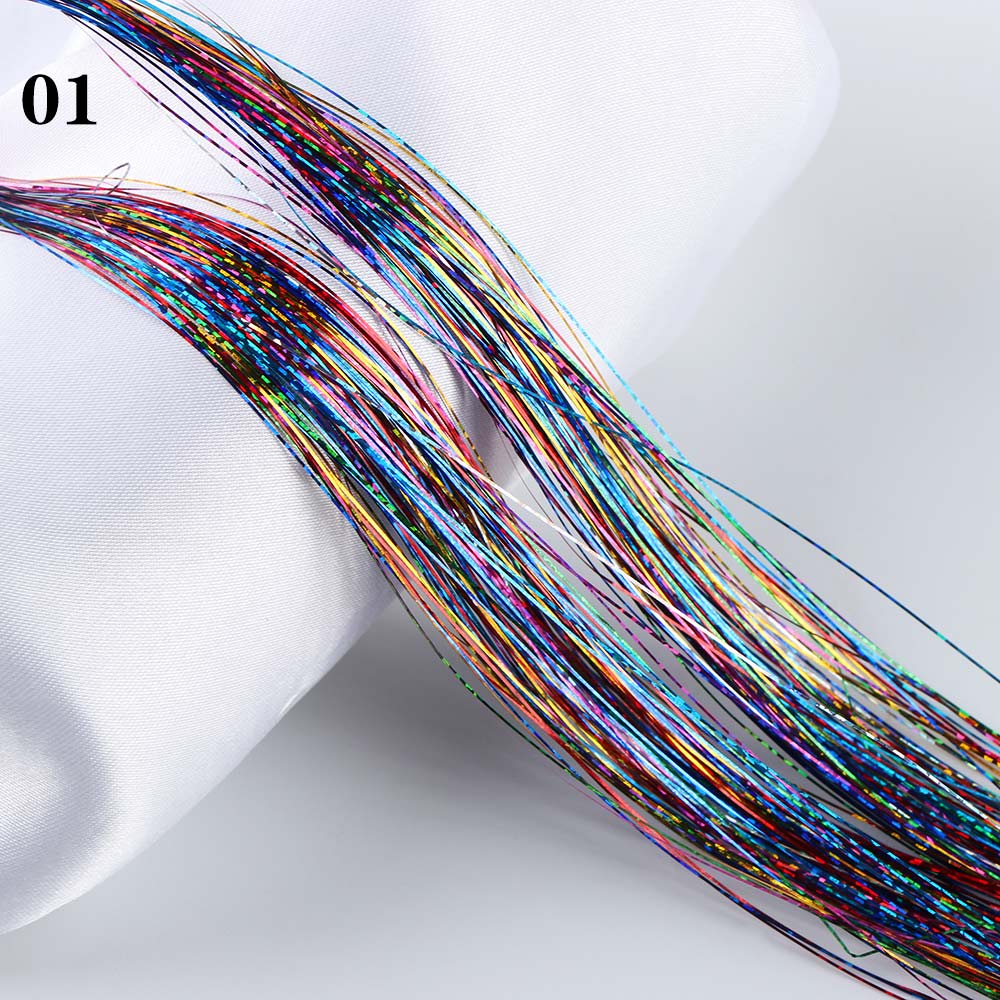 OSIER 100 Strands Hot Sale Hair Tinsel Streak Clubbing Glitter Rainbow Color Hair Extension Synthetic Hair Party Sparkly Girls Bling Silk