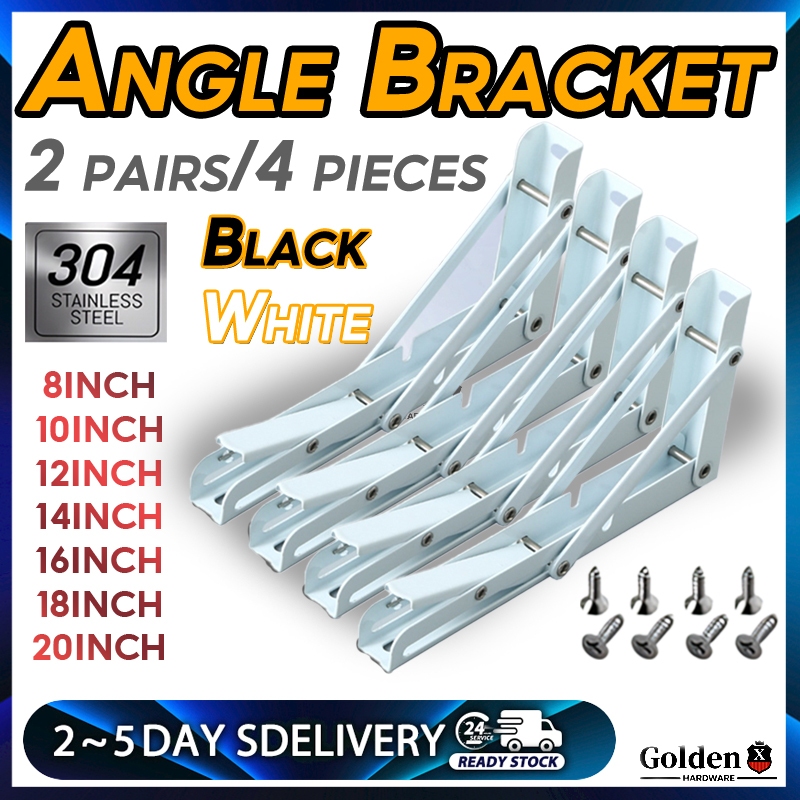 (4 PCS)Folding Angle Bracket Adjustable Shelf Bracket Stainless Steel Triangle Foldable Table Bracke