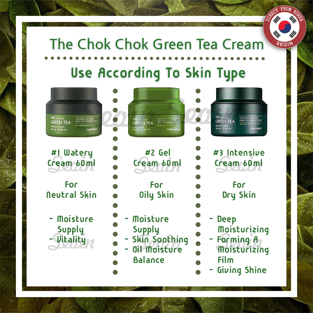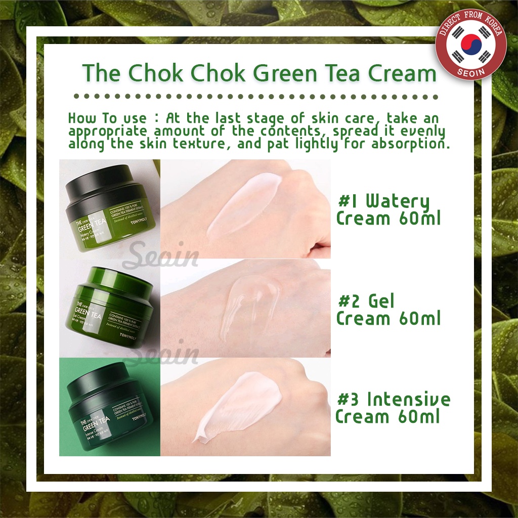 TONYMOLY The Chok Chok Green Tea Watery Cream / Intense Cream / Gel Cream 60ml - Seoin