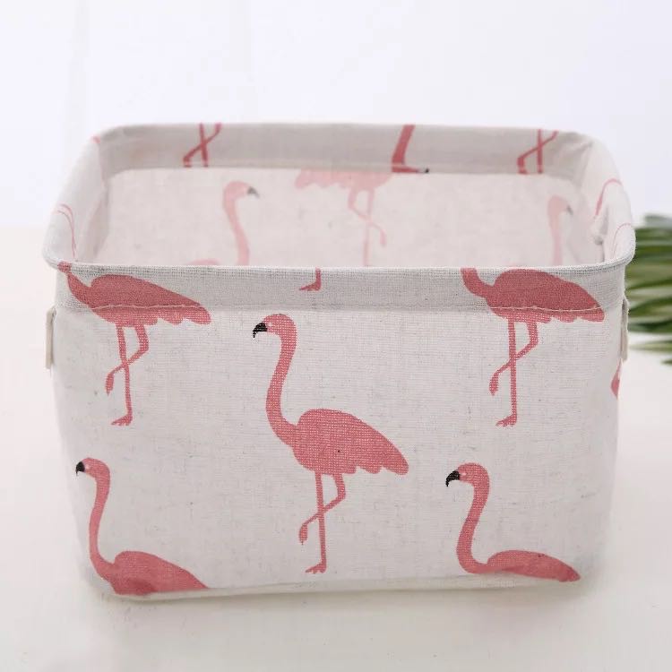 Cotton Linen Storage Box Cartoon Square Debris Basket Makeup Organizer Sundries Sorting Container