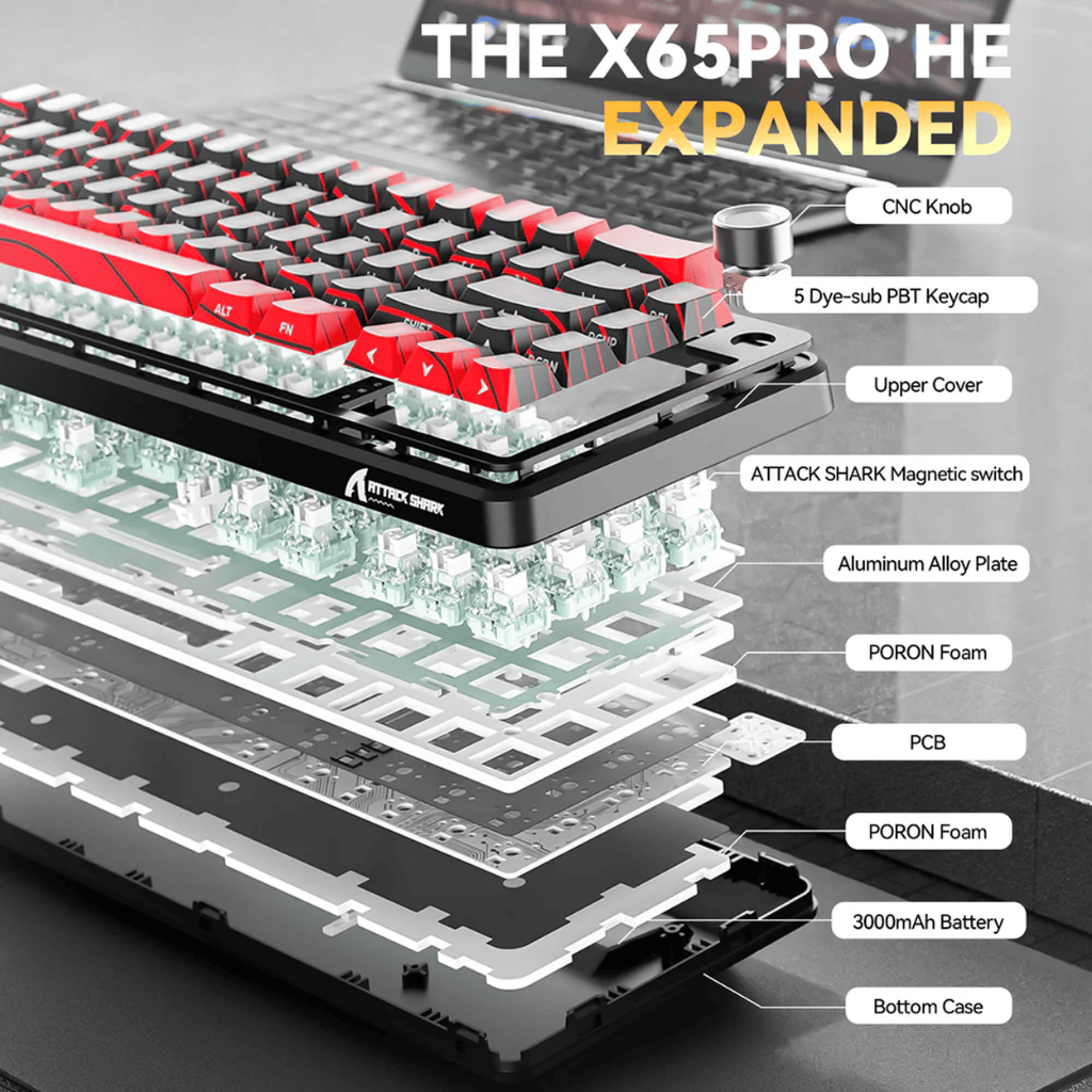 Attack Shark X65 PRO HE 65% Tri Mode 8KHz Rapid Trigger Mechanical Gaming Keyboard Magnetic Switch