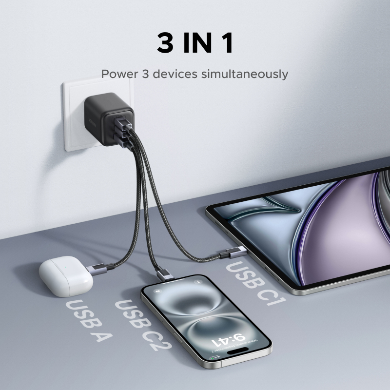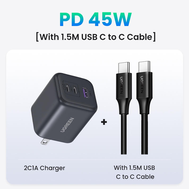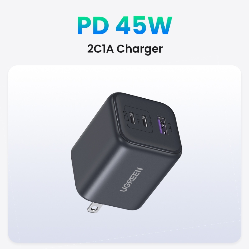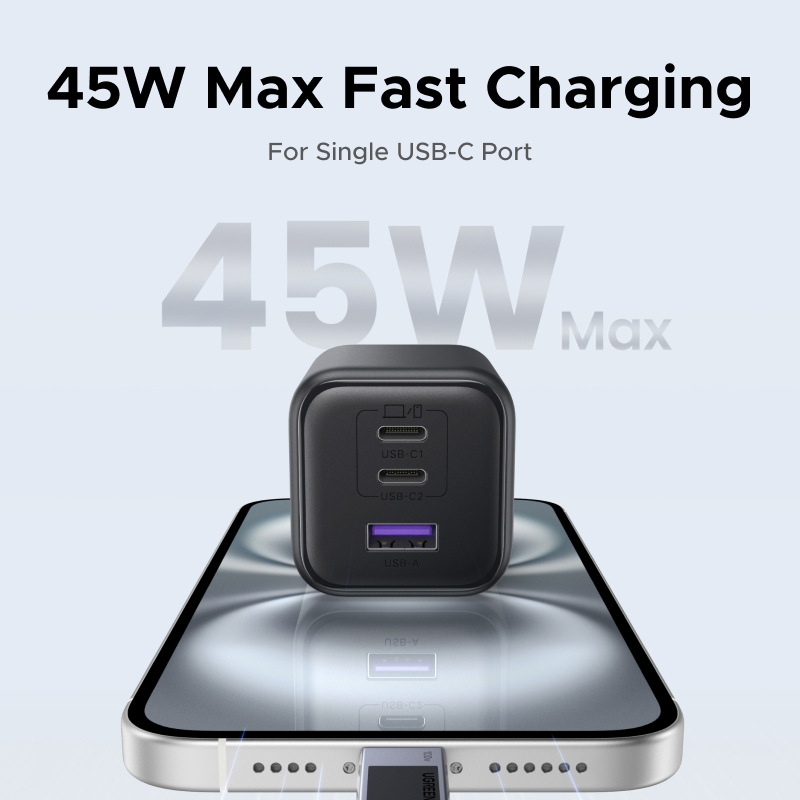 UGREEN 45W GaN Fast Charging Charger with USB-C*2+USB-A*1 Adapter for iPhone 17/16/15/14/13, Galaxy S24 Ultra/S23