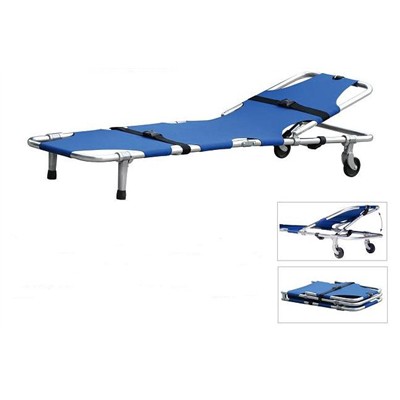 Fold Stretcher with Wheels Head Adjustment and Safety Straps