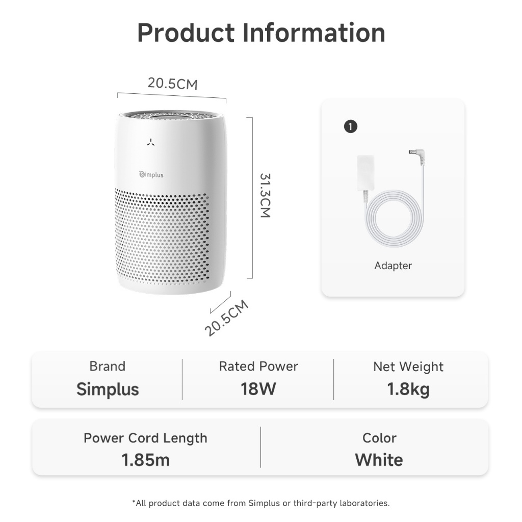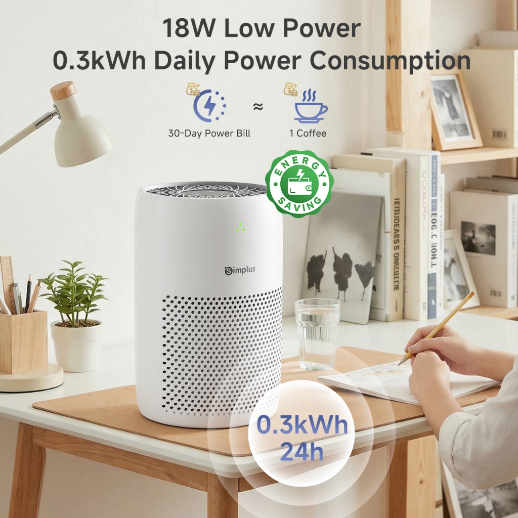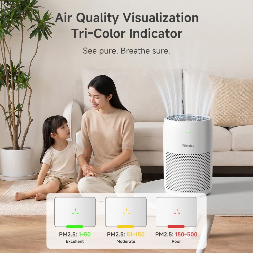 Simplus Air Purifier Effective Area 25m³ App Control 210m³/h CADR Compact Size Color Indicator
