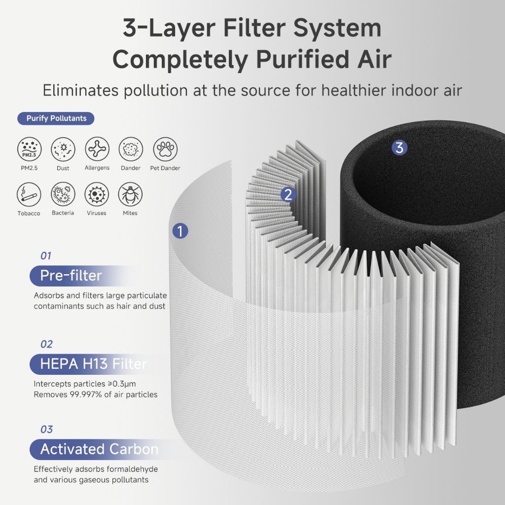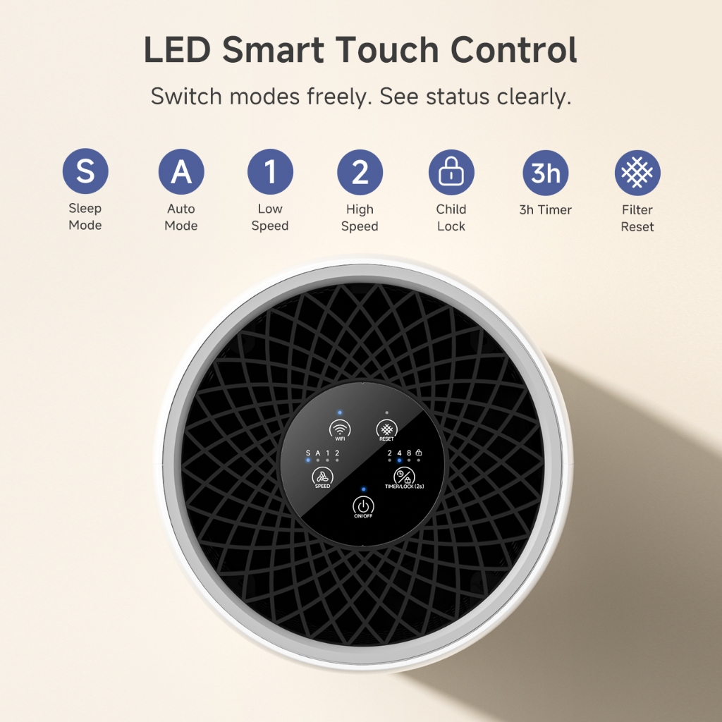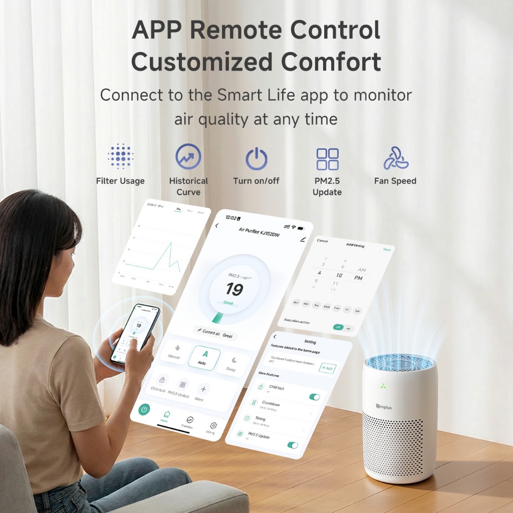 Simplus Air Purifier Effective Area 25m³ App Control 210m³/h CADR Compact Size Color Indicator